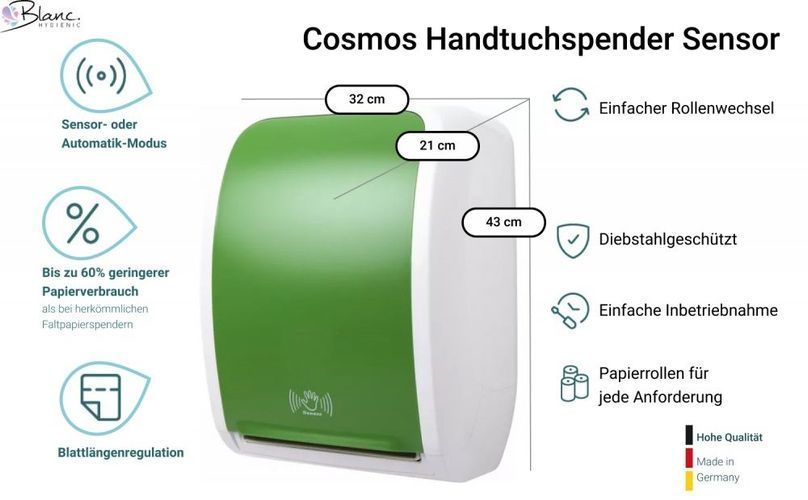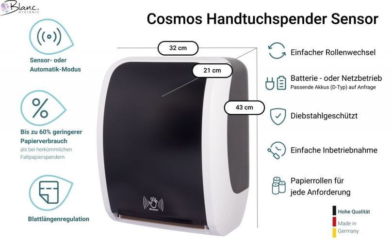 SET: Handtuchrollenspender SENSOR, berührungslos, Blanc Cosmos verschied. Farben + 2