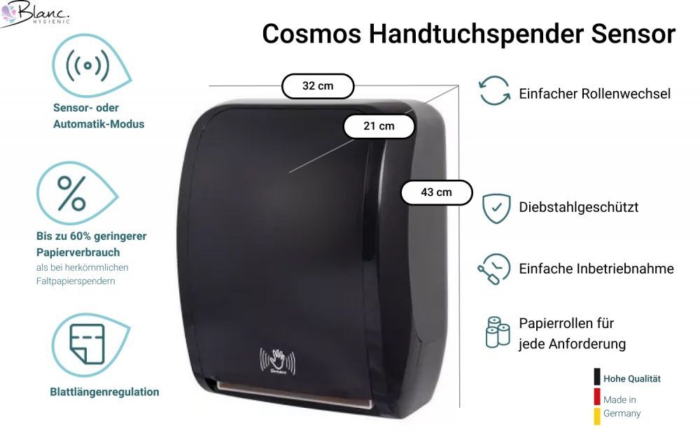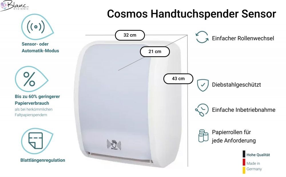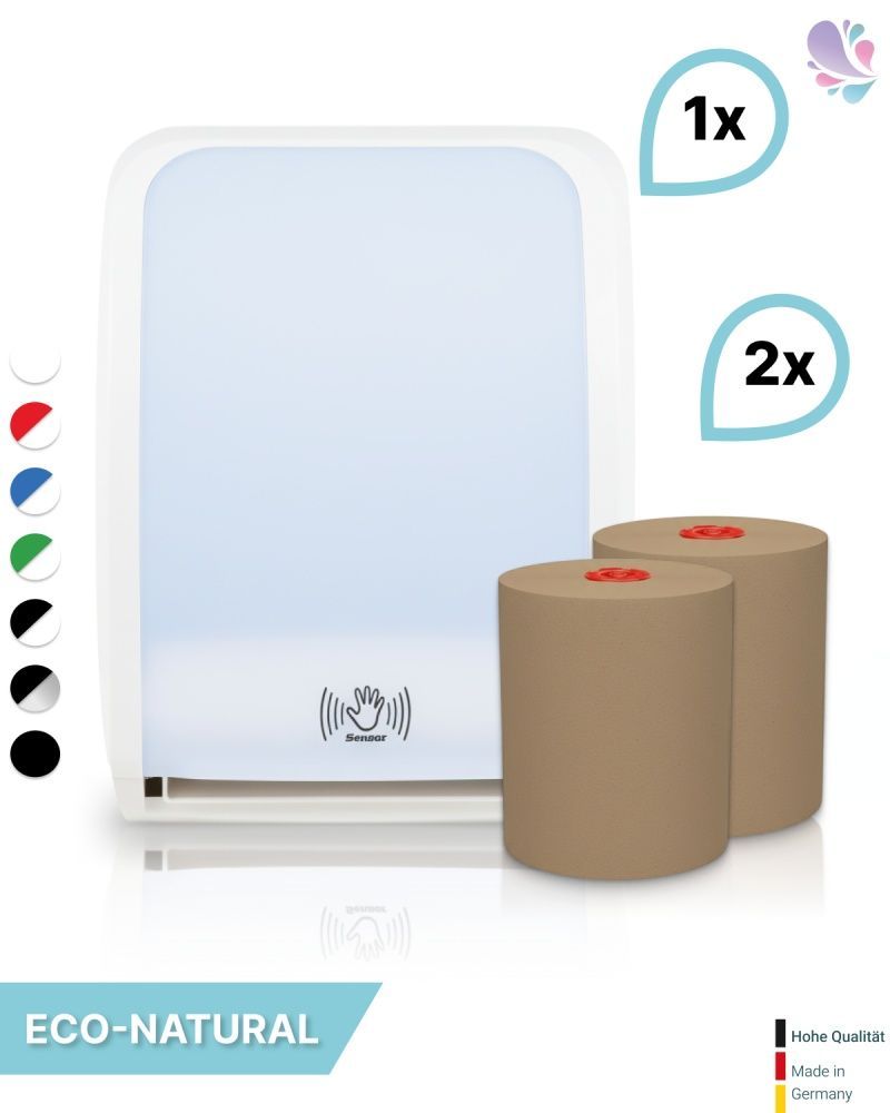 SET: Handtuchrollenspender SENSOR, berührungslos, Blanc Cosmos verschied. Farben + 2
