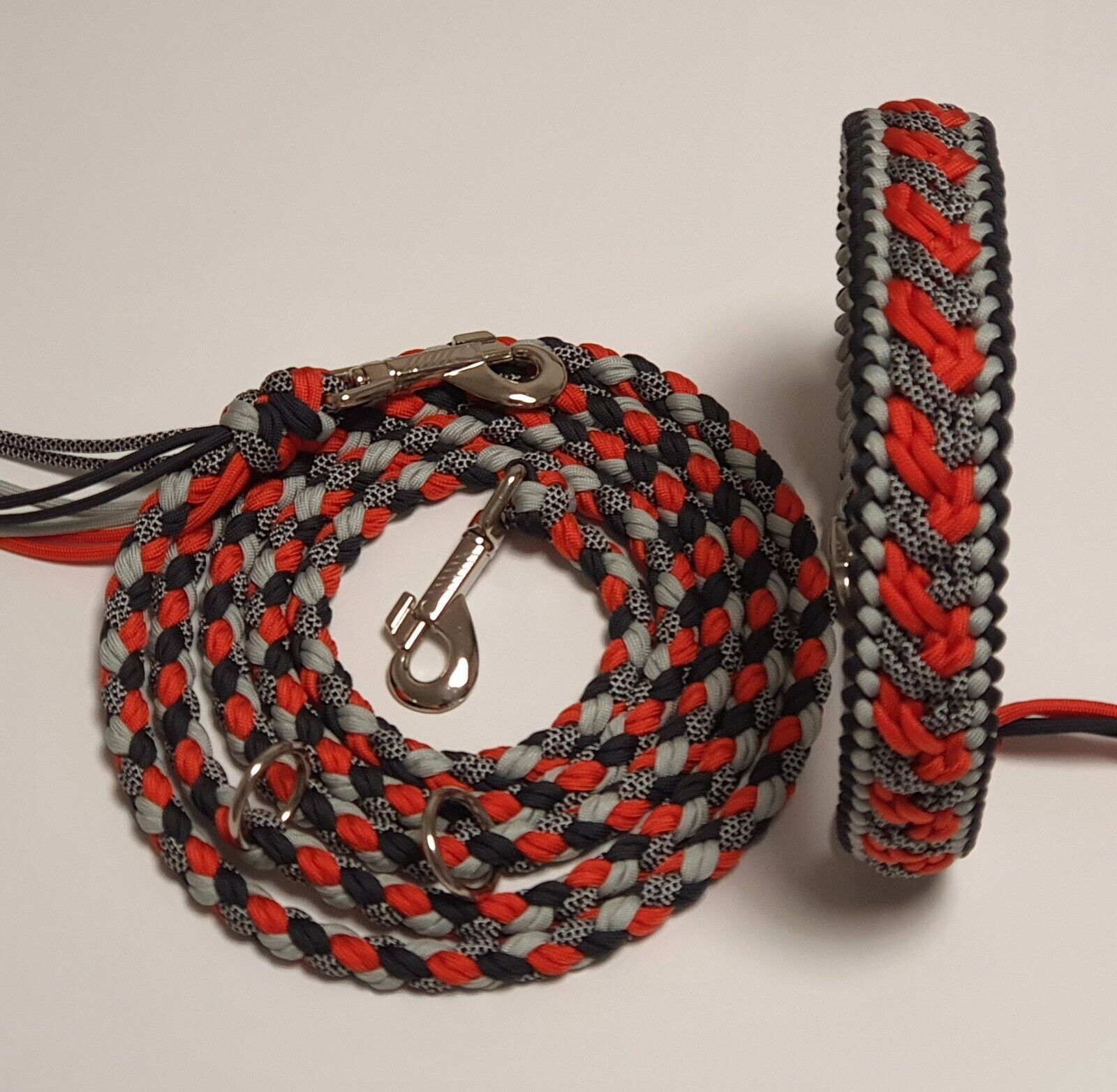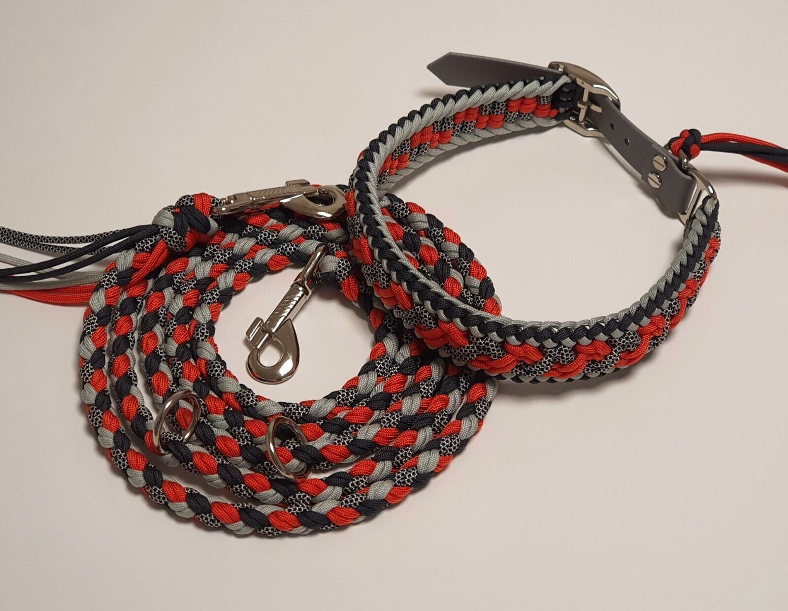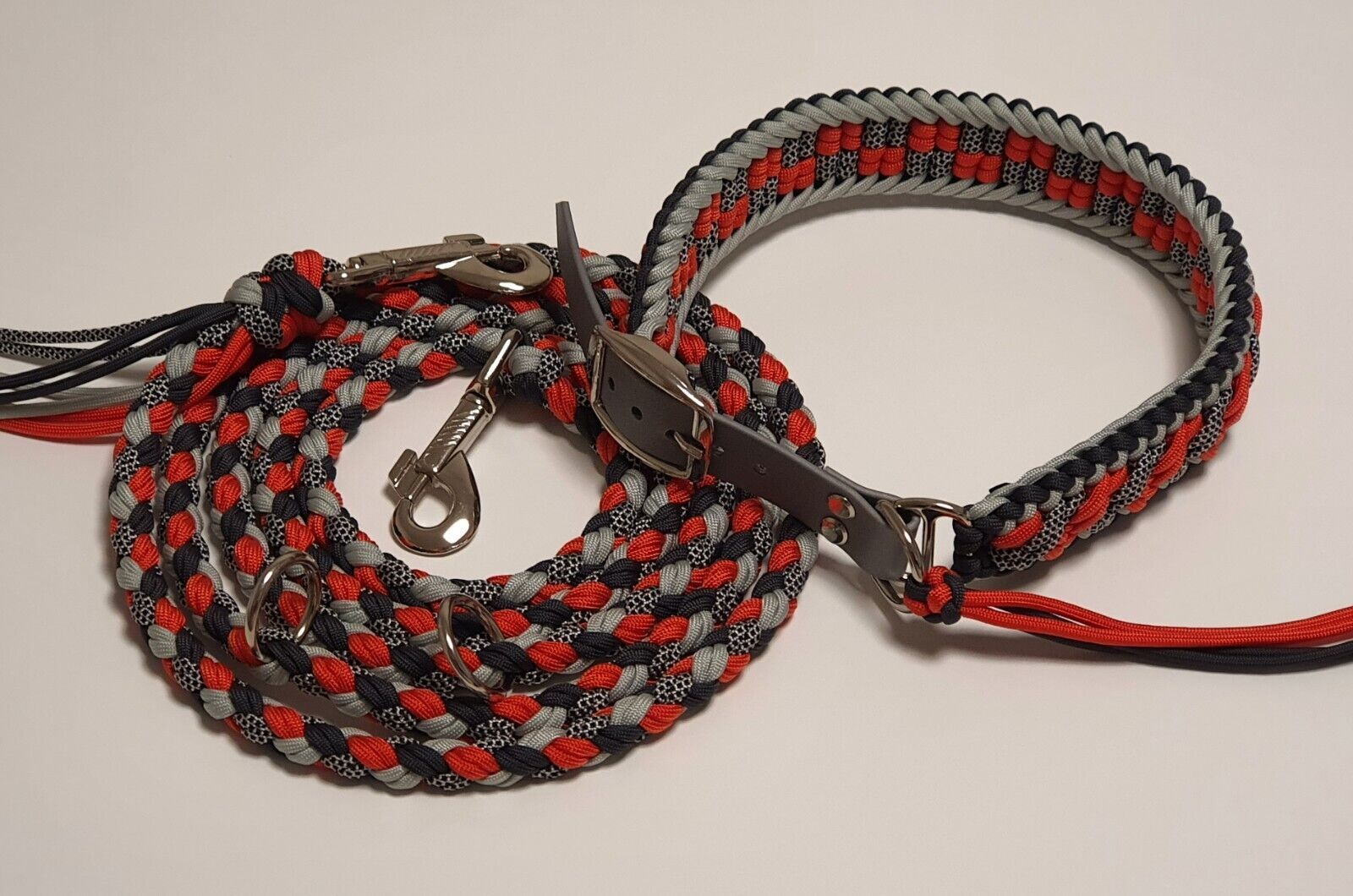 Set (Hundeleine & Hundehalsband) aus Paracord „River“ Farben Rot Anthrazit