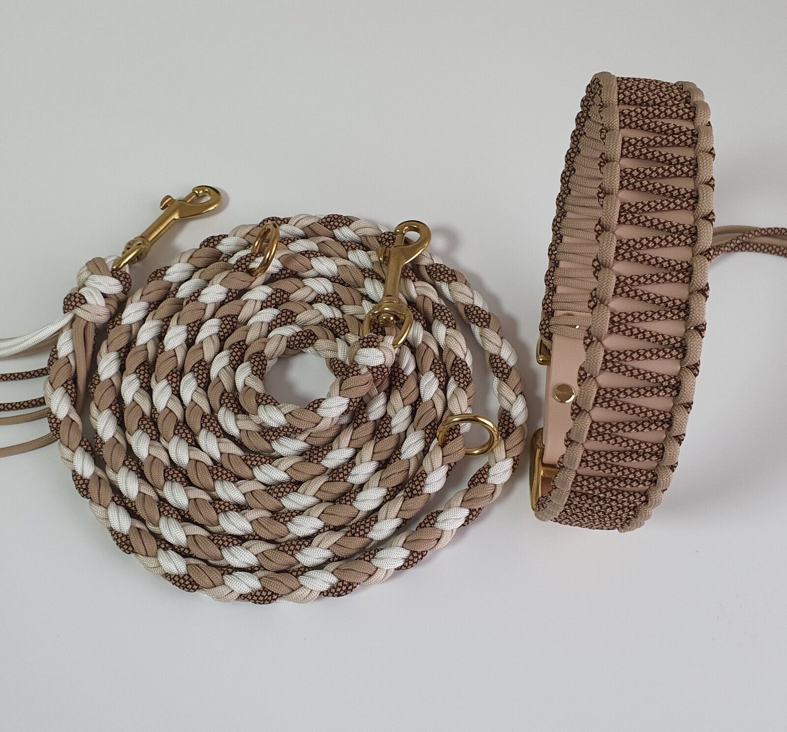 Ein Set (Hundeleine und Halsband), so einzigartig wie dein Liebling! Mit dem Paracord-Set „Biothane King Kobra“ in wunderschönem Mocca und Creme präsentiere ich dir nicht nur einzigartige Accessoires, sondern handgefertigte Kunstwerke aus hochwertigem Paracord, das jede Fellnase mit Stolz tragen wir