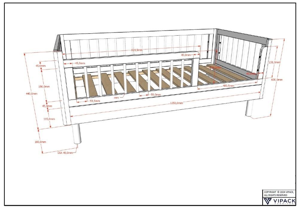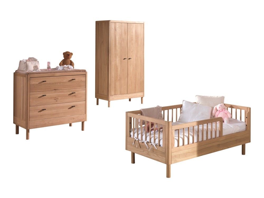 VIPACK Set Juniorbett Wickelkommode Schrank Kinderzimmer Babyzimmer Eiche Massiv natur