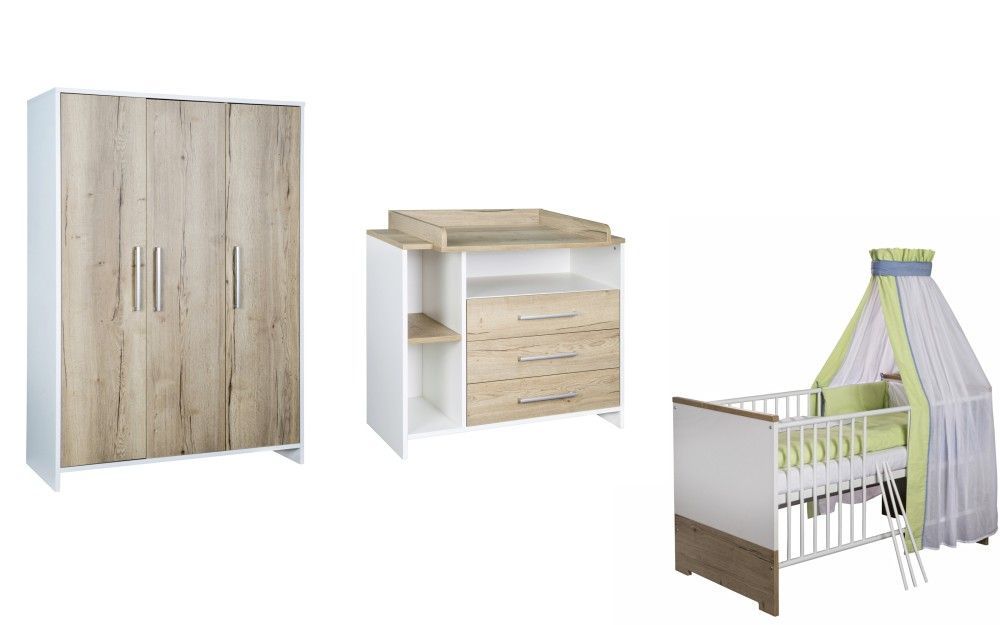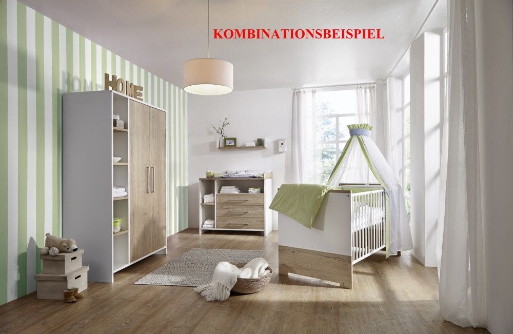 Schardt Set Kinderbett 70x140 Wickelkommode Schrank Umbauseiten Babyzimmer Weiß Schardt