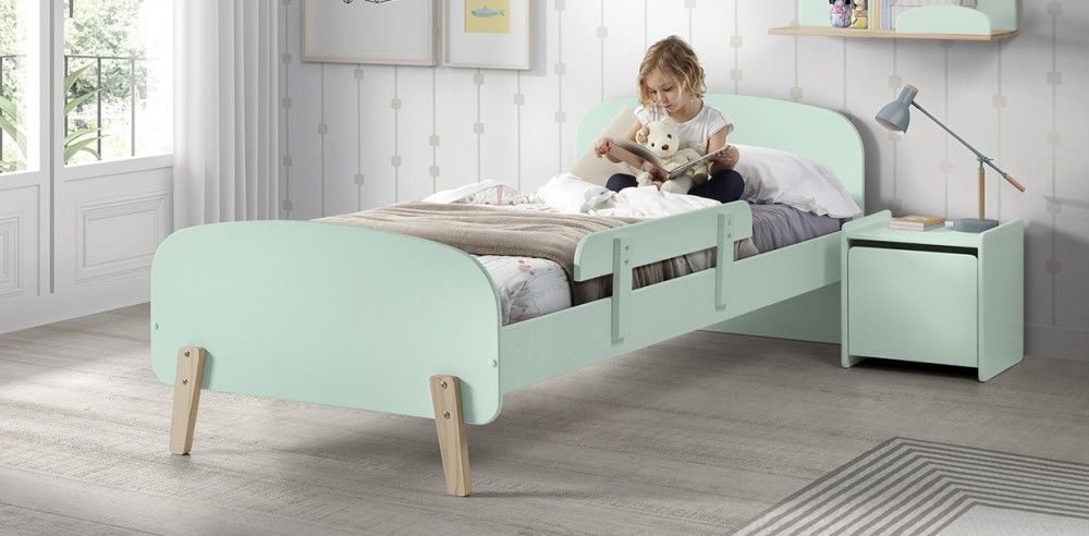 VIPACK Set Kinderbett Lattenrost Nachtkonsole 90x200 Absturzschutz Kindermöbel mintgrün
