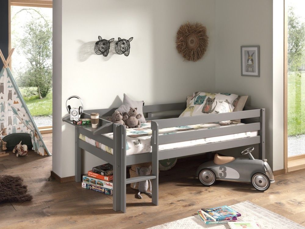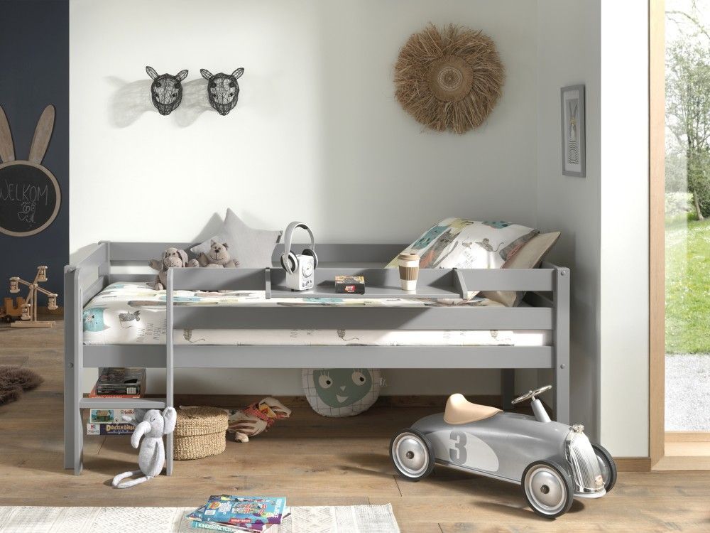 VIPACK Set Kojen Spielbett 90x200 Lattenrost Leiter Hängeregal Kinderzimmer Bett Grau