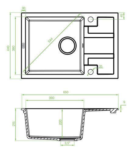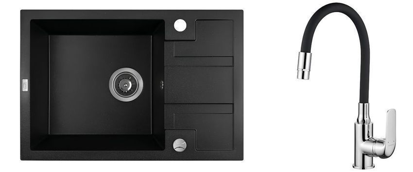 SET Küchenarmatur & Granitspüle 1-Becken Barbados Schwarz 44x65 | Siphon im SET!