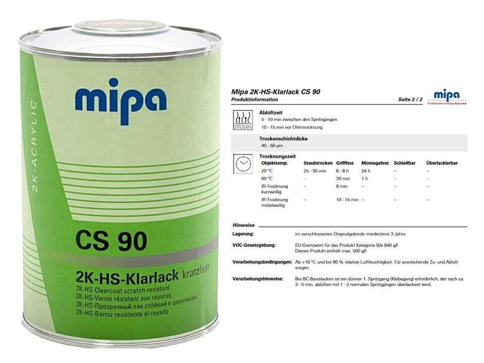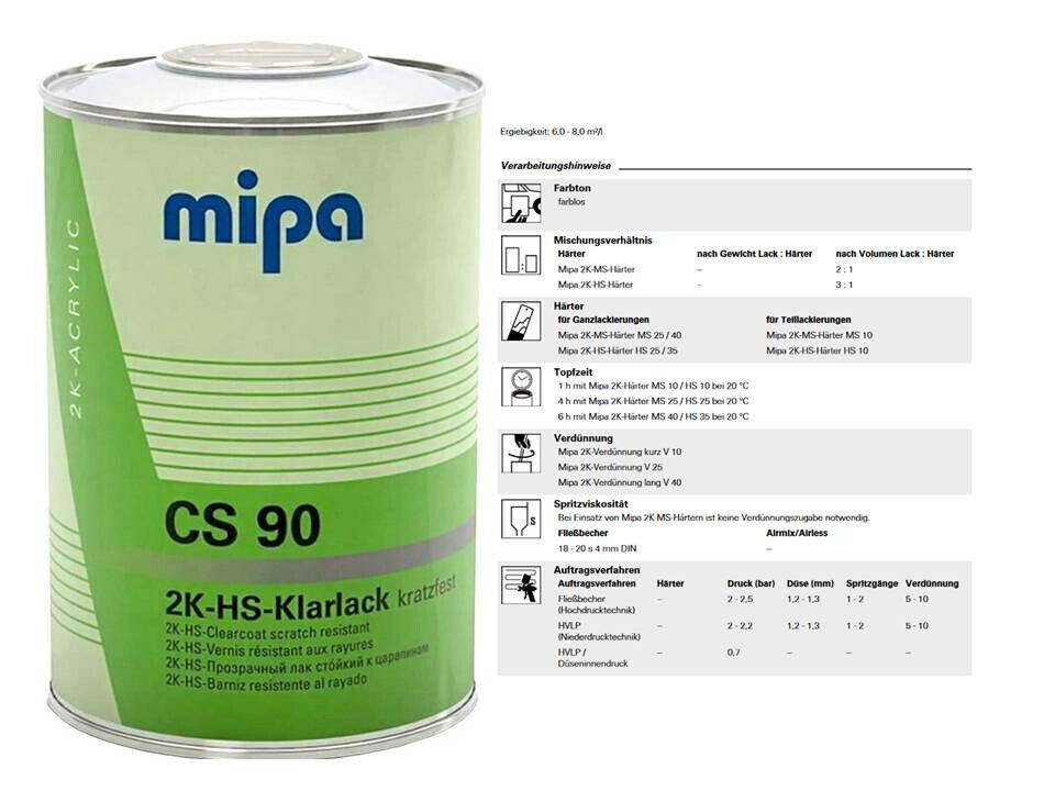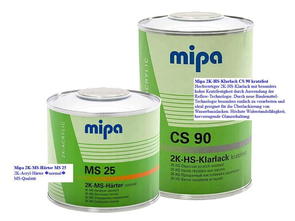 Mipa SET Mipa 2K-HS-Klarlack CS 90 + Mipa 2K-MS-Härter MS25 1,5L Kratzfest Acryllack