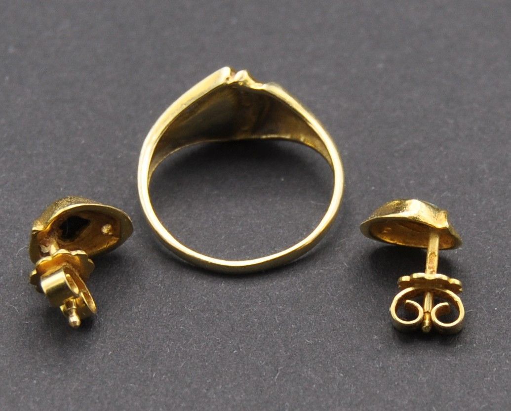 Gemme Kamee Handarbeit Set Ring Ohrringe Drop 585 Gold Antik