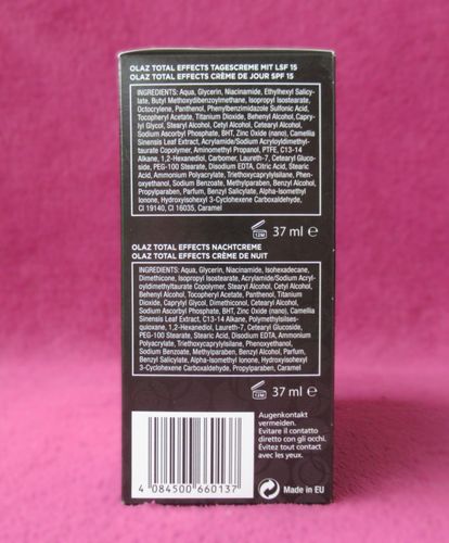 N E U Effectives Anti-Aging Duo OLAZ TOTAL EFFECTS 7in1 Feuchtigkeitsspendende Tagescreme mit LSF 15 + straffende Nachtcreme 7 Produktvorteile in einer Pflege: 1. Gleicht das Erscheinungsbild des Hauttons aus 2. Minimiert das Aussehen von Poren 3. Verbessert die Leuchtkraft der Haut 4. Mindert sicht