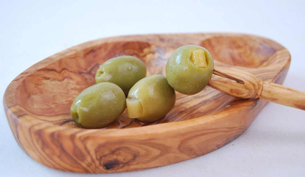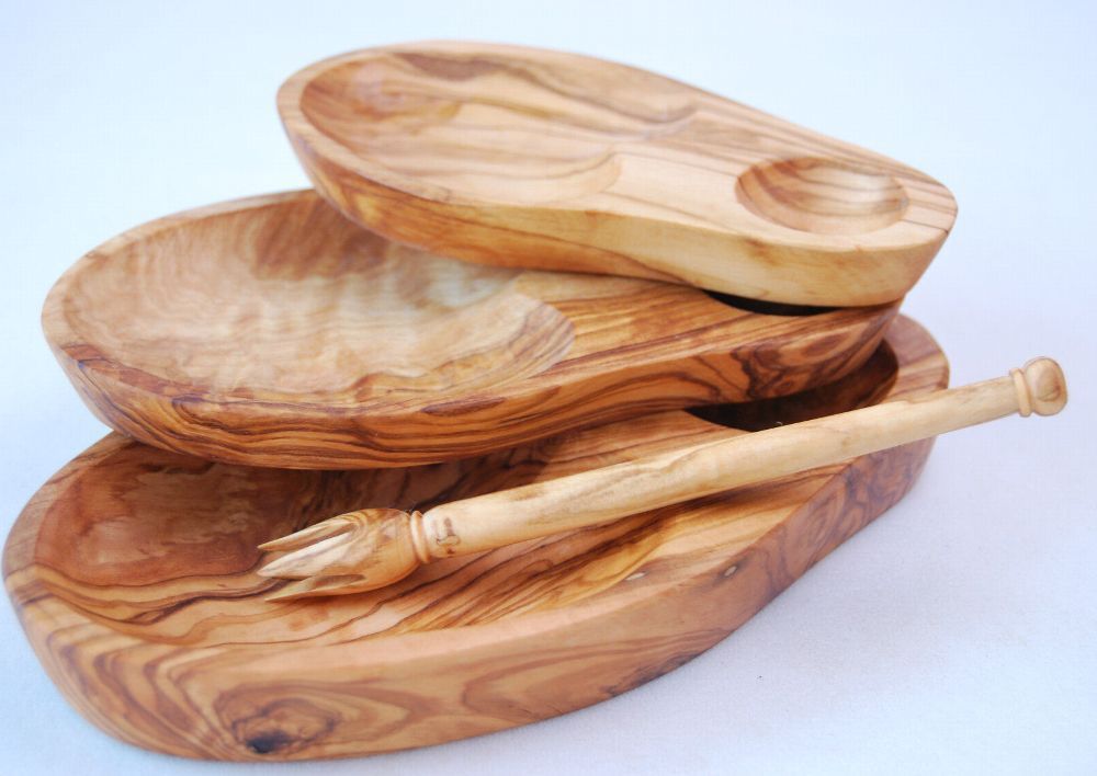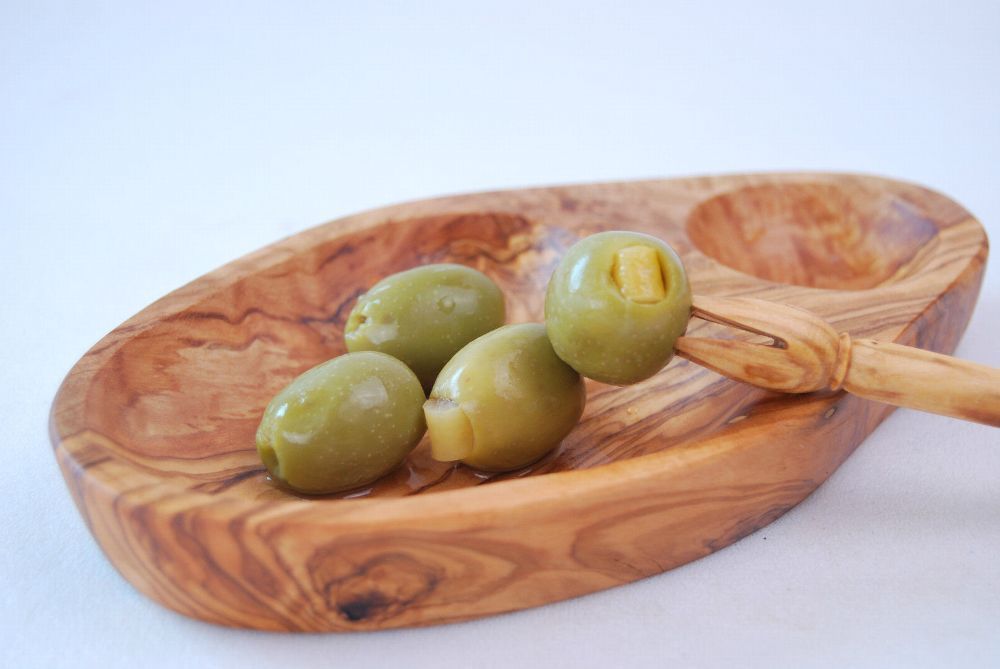 Set Olivenschale & Olivenpicker, Olivenholz Piker Schale Holzschale Tappasschale