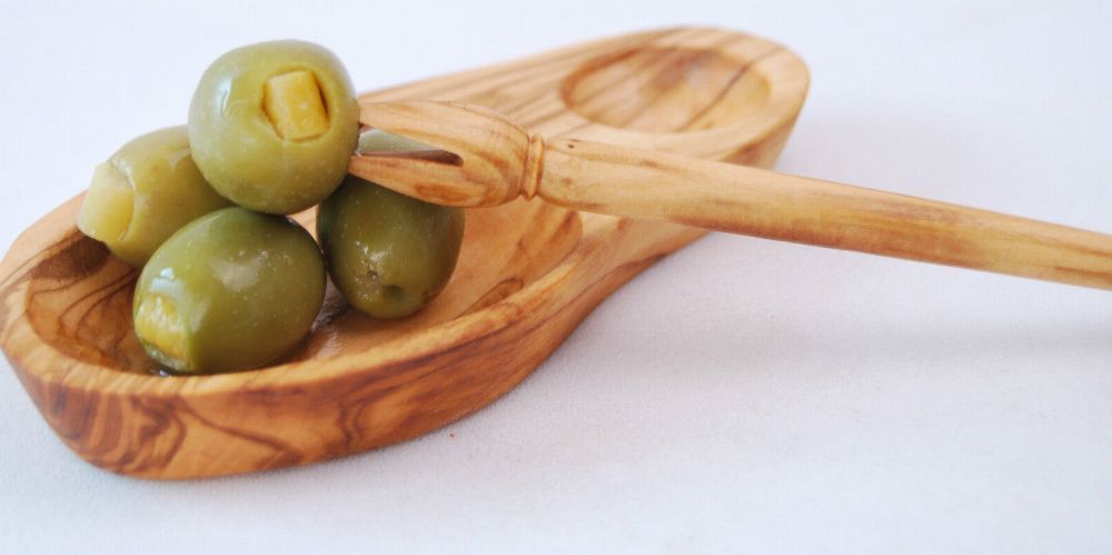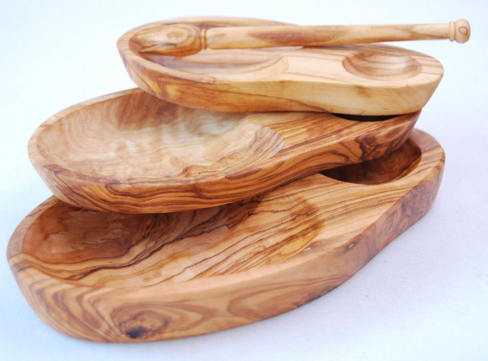 Set: Olivenschale & Olivenpicker Olivenholz Piker Schale Holzschale Tappasschale