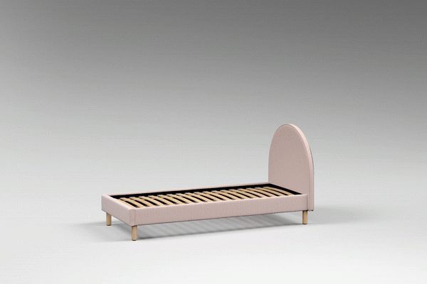 • Kinderbett Polsterbett Bett Häschen 90x200cm Stoff Bukla Hellrosa ohne Matratze