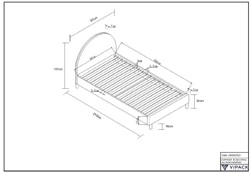• Polsterbett 90x200 Grau EInzelbett Stoffbett Bett Bettgestell mit Lattenrost 1986