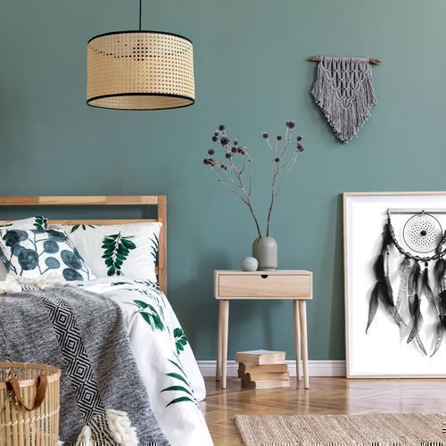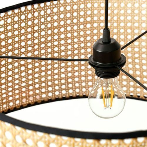 Set Rattan Pendelleuchte RENNI B BOHO STYLE (Ø38cm) + Glühbirne 7W E27 Warm Farbe