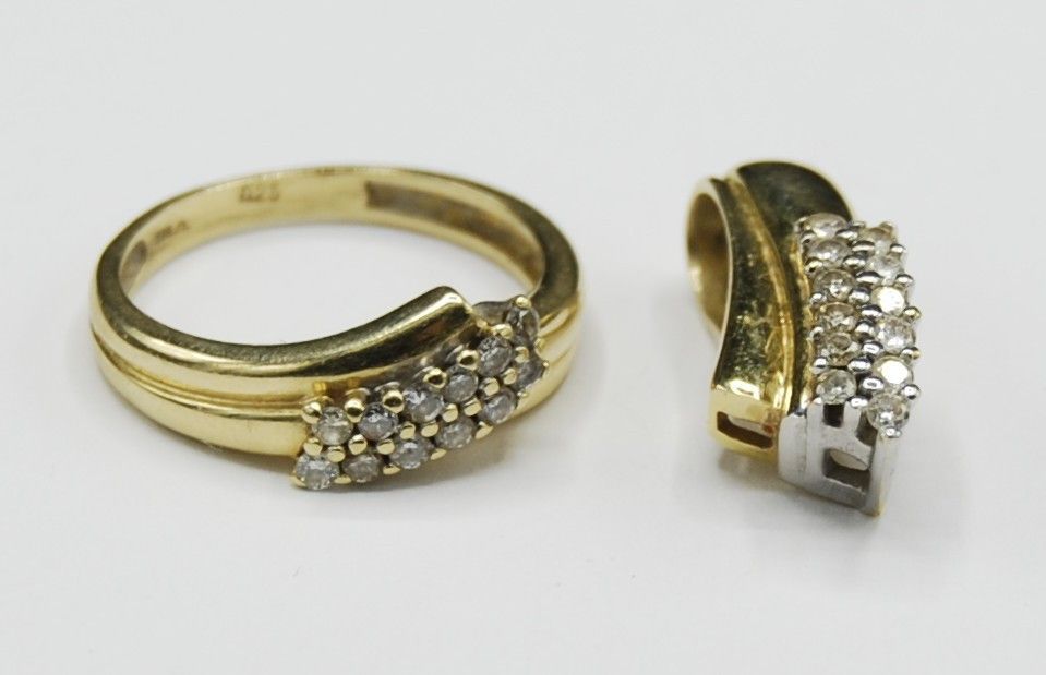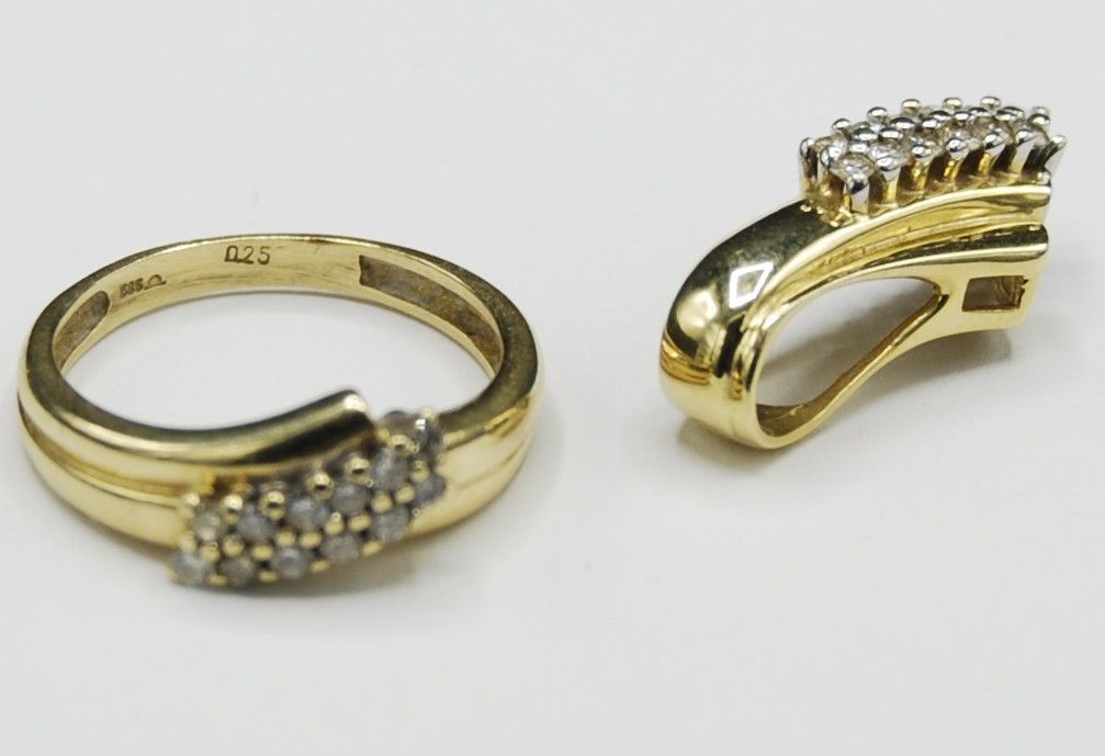 Set Ring Anhänger Diamant Brillant 585 Gold Neu wertig