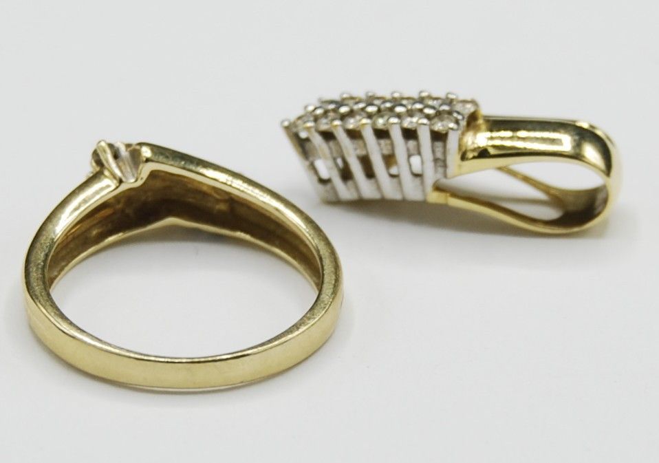 Das Schmuck Set ist stabil und solide gearbeitet und wiegt knapp 5 Gramm. Der Anhänger ist 2,1 cm lang und 7,5 mm breit. Er trägt wie der Ring 12 Diamanten in Weißgold gefasst. Der Ring hat einen Innendurchmesser von 1,64 cm. Beider Schmuckstücke sind 585 und 0.25 für die Diamanten gestempelt. Ich habe noch mehr Schmuck eingestellt.