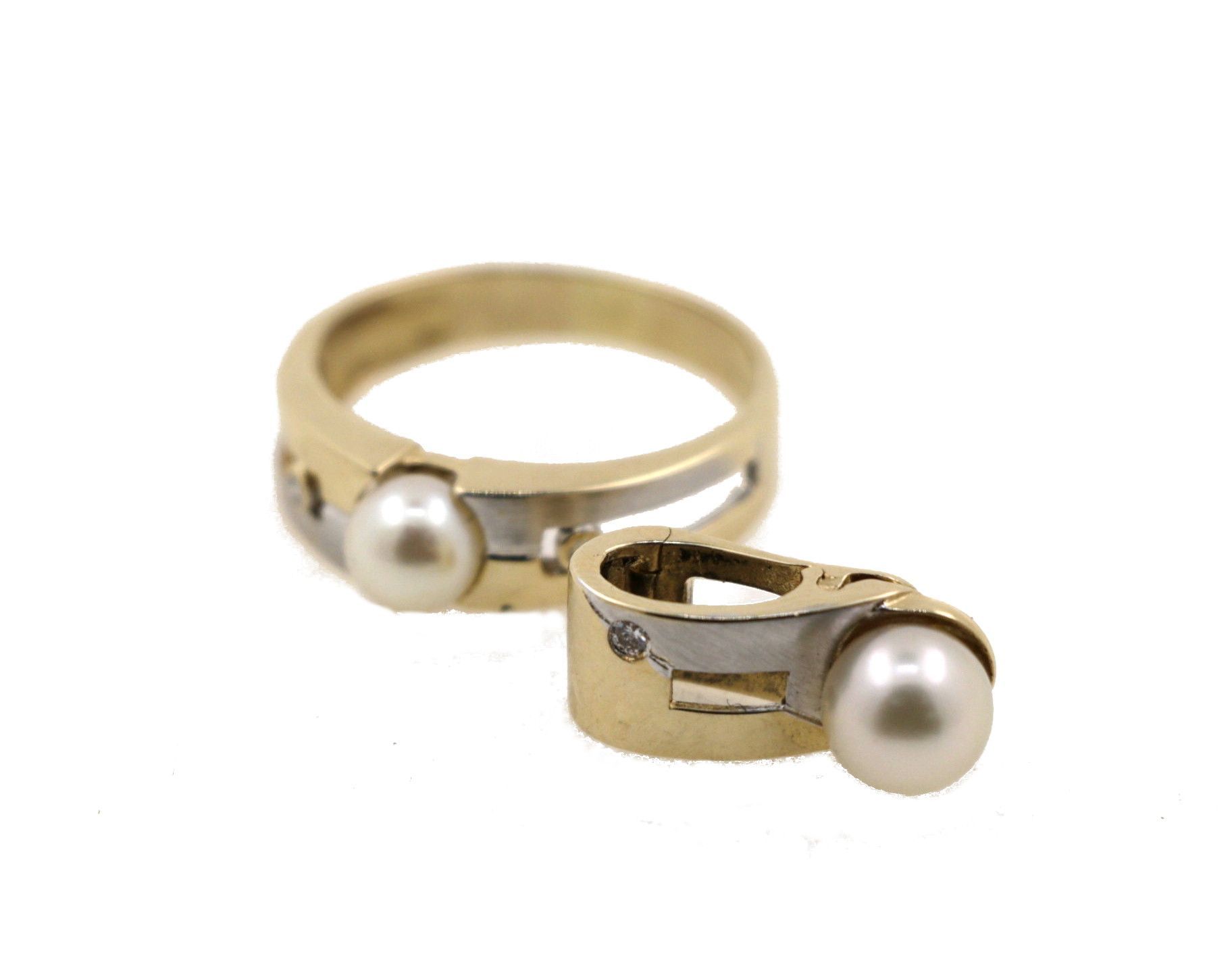 Set - Ring und Anhänger aus 585er Gelb- und Weißgold mit Brillanten und Akoya-Perle