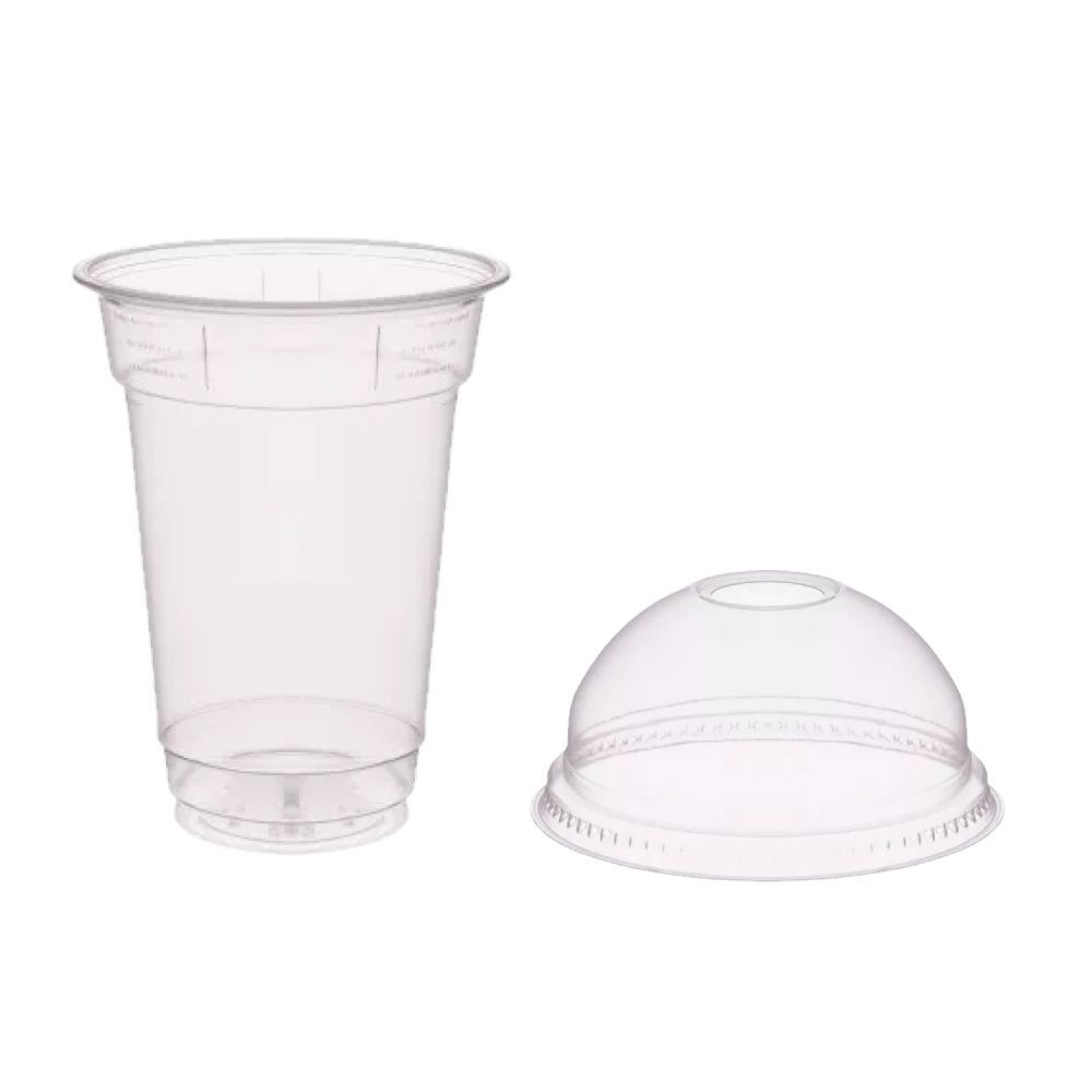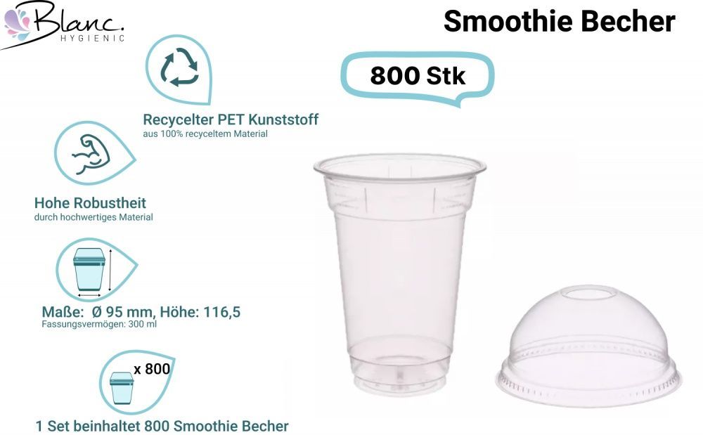 SET: Smoothie Cups 300ml + Deckel mit Loch - 800 Stück, transparentes recyceltes PET