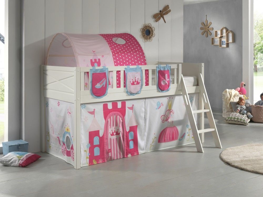 VIPACK Set Spielbett Vorhang Lattenrost Hochbett Kinderbett 90x200 Prinzessin Pink Rosa