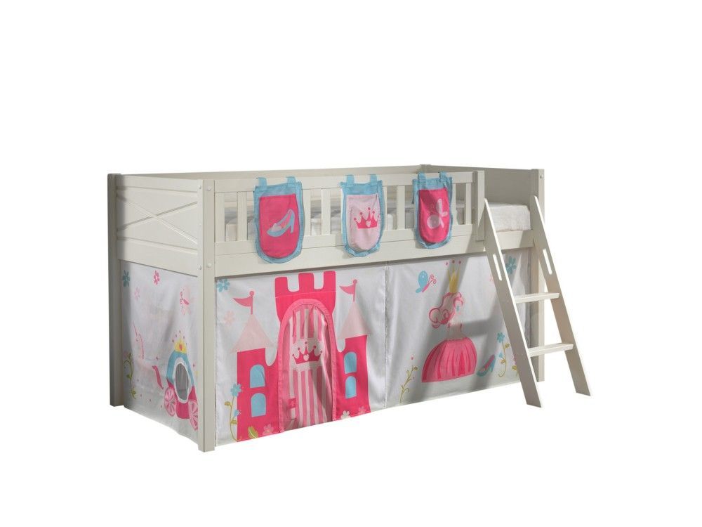 VIPACK Set Spielbett Vorhang Lattenrost Hochbett Kinderbett 90x200 Prinzessin Pink Rosa
