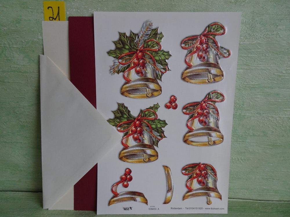 SET TBZ 3D Bogen Din A5 Karte Einleger + Kuvert Frohe Weihnachten Glockenklang .....