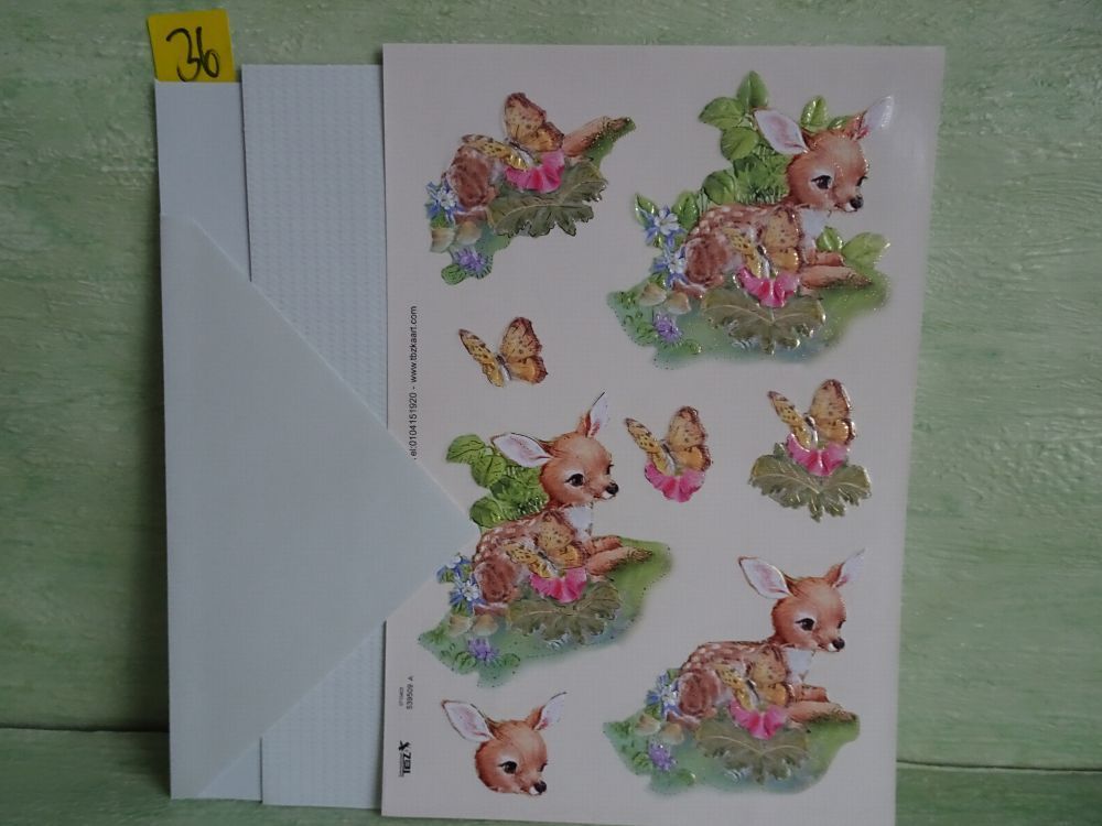 SET TBZ 3D Bogen Din A5 Karte Einleger + Kuvert Tiere Tierbabys Reh Elefant Kalb Lamm