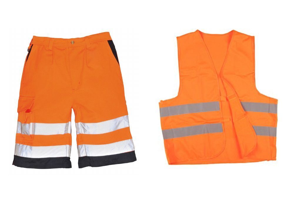 Set Warnschutz Arbeitsshorts+Gilet orange S-4XL Pantalon de haute Visibilité Cette fiche produit a été automatiquement traduite. Si vous avez des questions, n’hésitez pas à nous contacter. Régler Shorts de travail d'alerte d'orange + Gilet avertissement orange de sécurité Shorts d'alerte de l'équipe