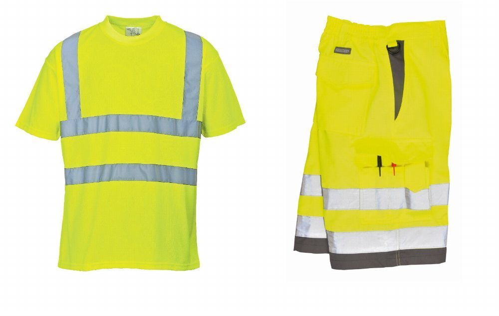 Set Warnschutz T-Shirt + Arbeitsshorts gelb S-4XL Warnschutzhose Shorts Bermuda