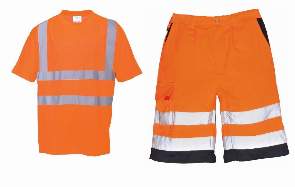 Set Warnschutz T-Shirt + Arbeitsshorts orange S-4XL Warnschutzhose Shorts Bermuda