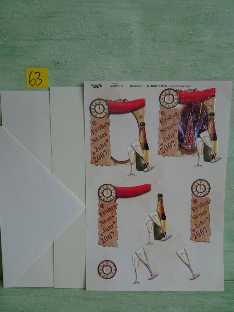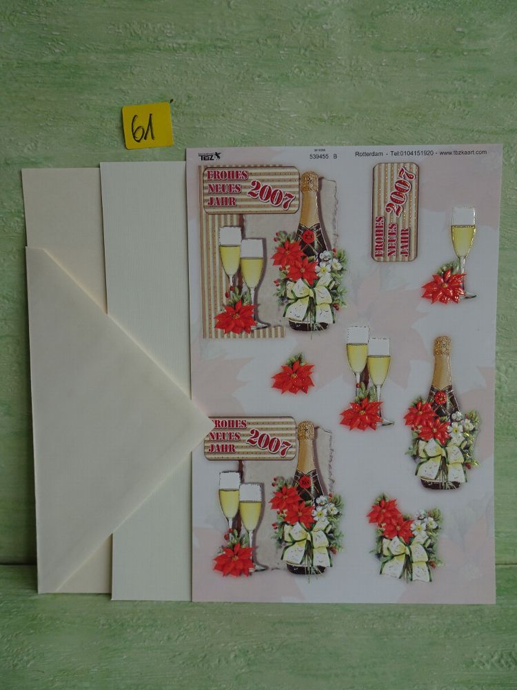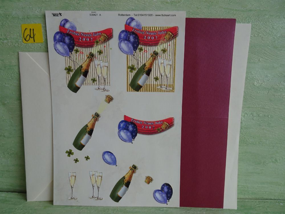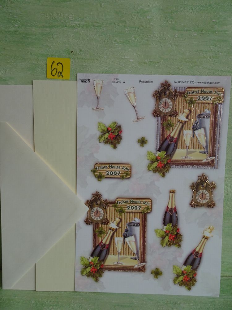 SETs TBZ 3D Bogen Din A5 Karte Kuvert Sekt Champagner Sylvester Neues Jahr Party