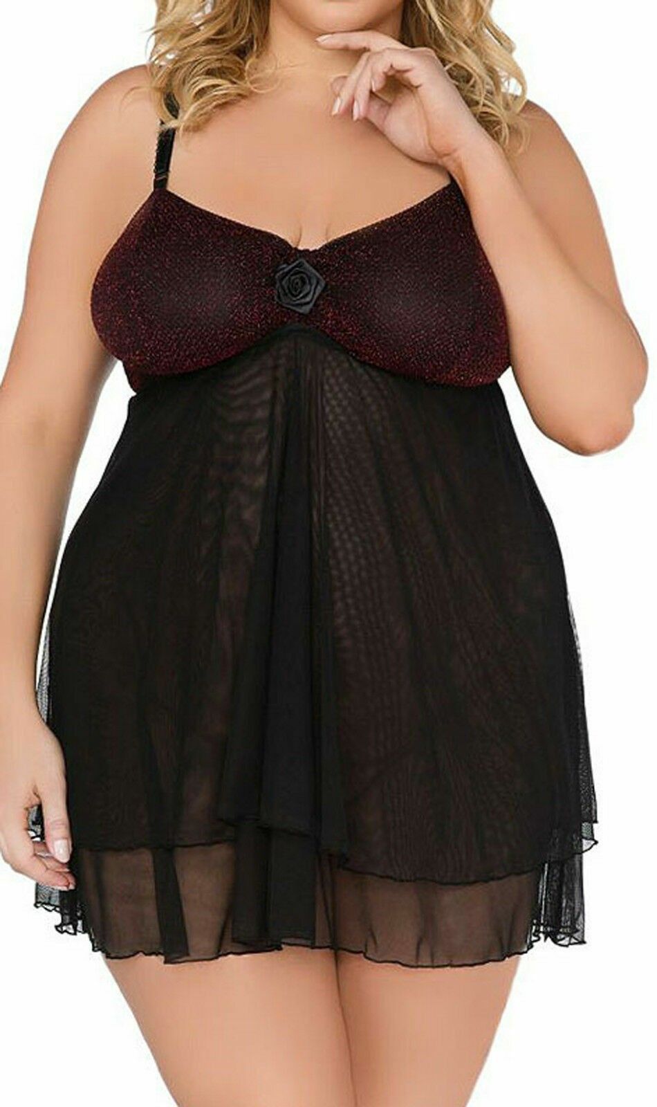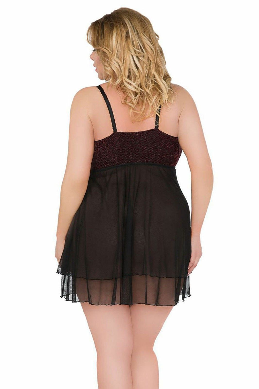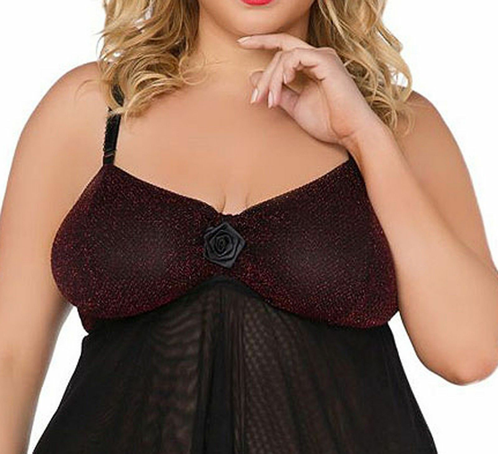 Sexy Babydoll Schwarz/ Bordeaux Nachtkleid Sexy Chemise Übergröße 38 bis 56