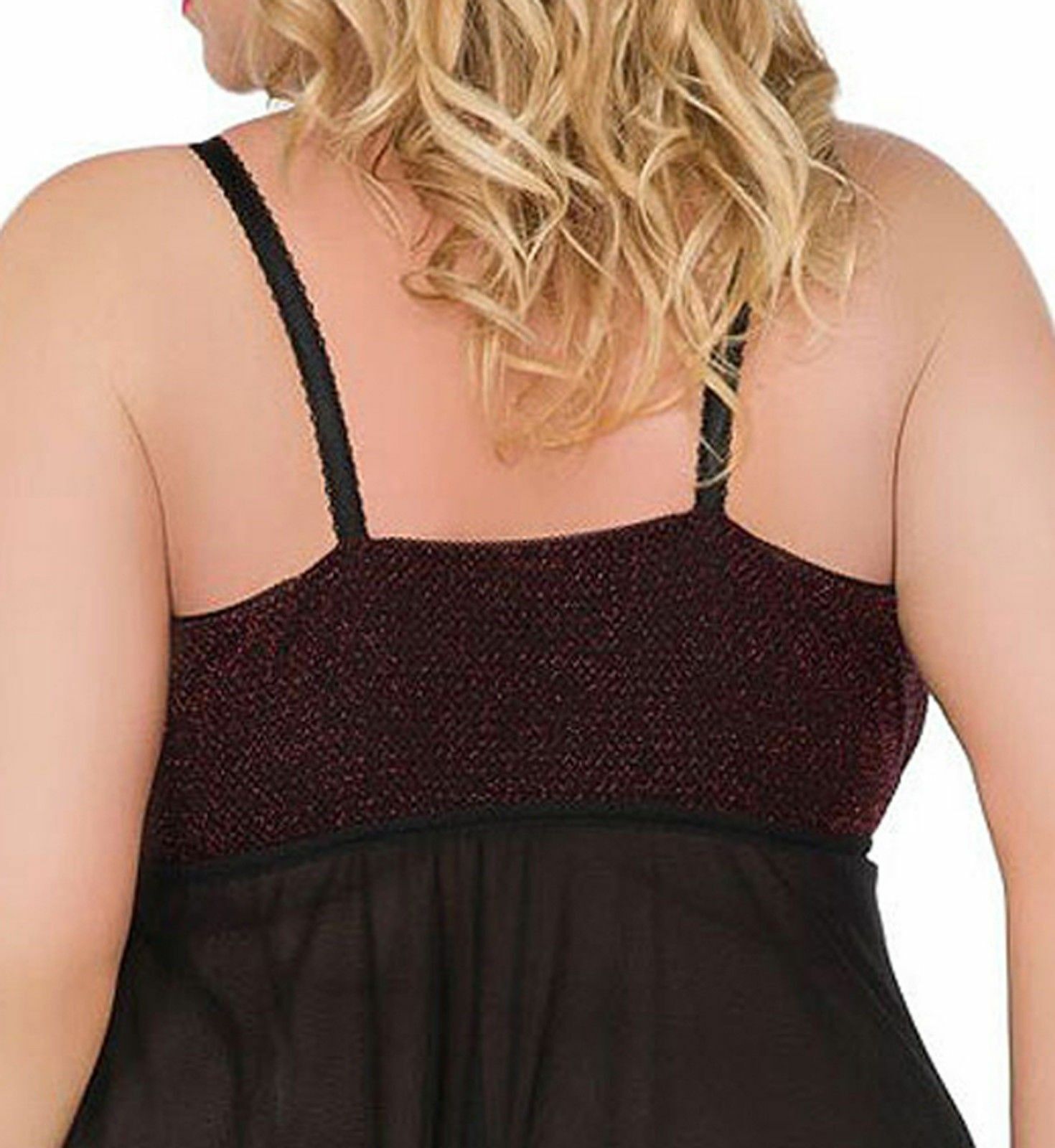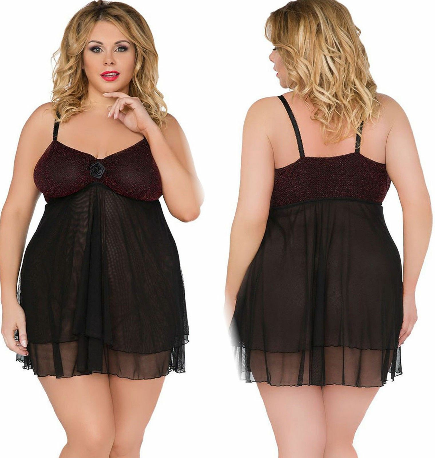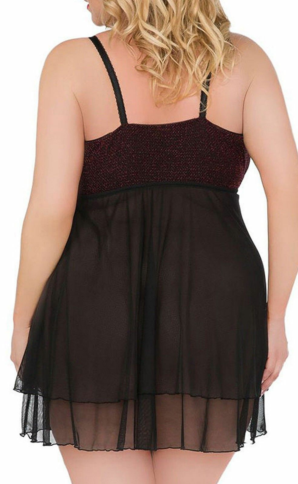 Sexy Babydoll Schwarz/ Bordeaux Nachtkleid Sexy Chemise Übergröße 38 bis 56