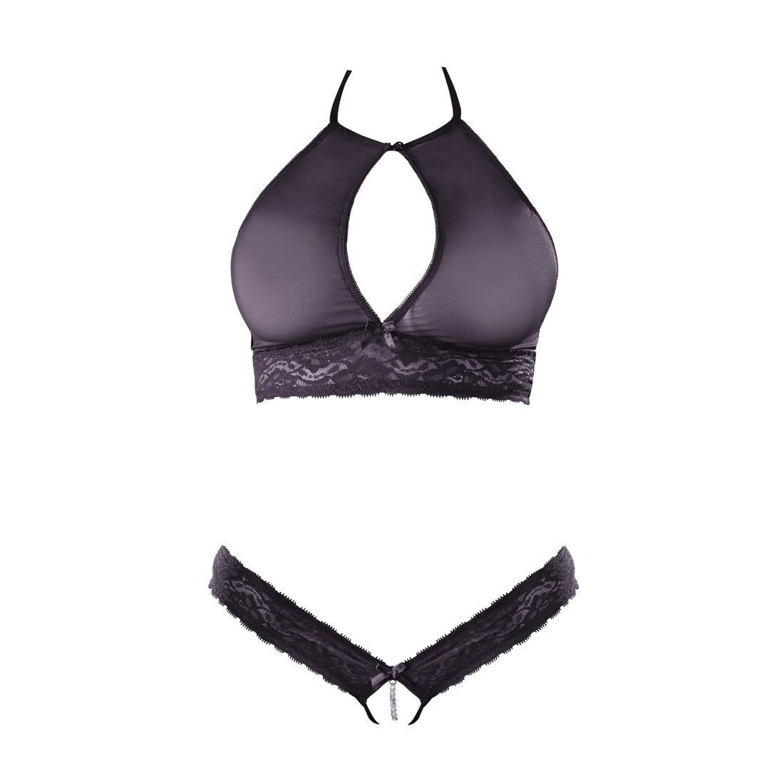 Sexy BH-Set S - XL transparent Schritt offen Kette Damen Dessous 75 80 85 "Anni"