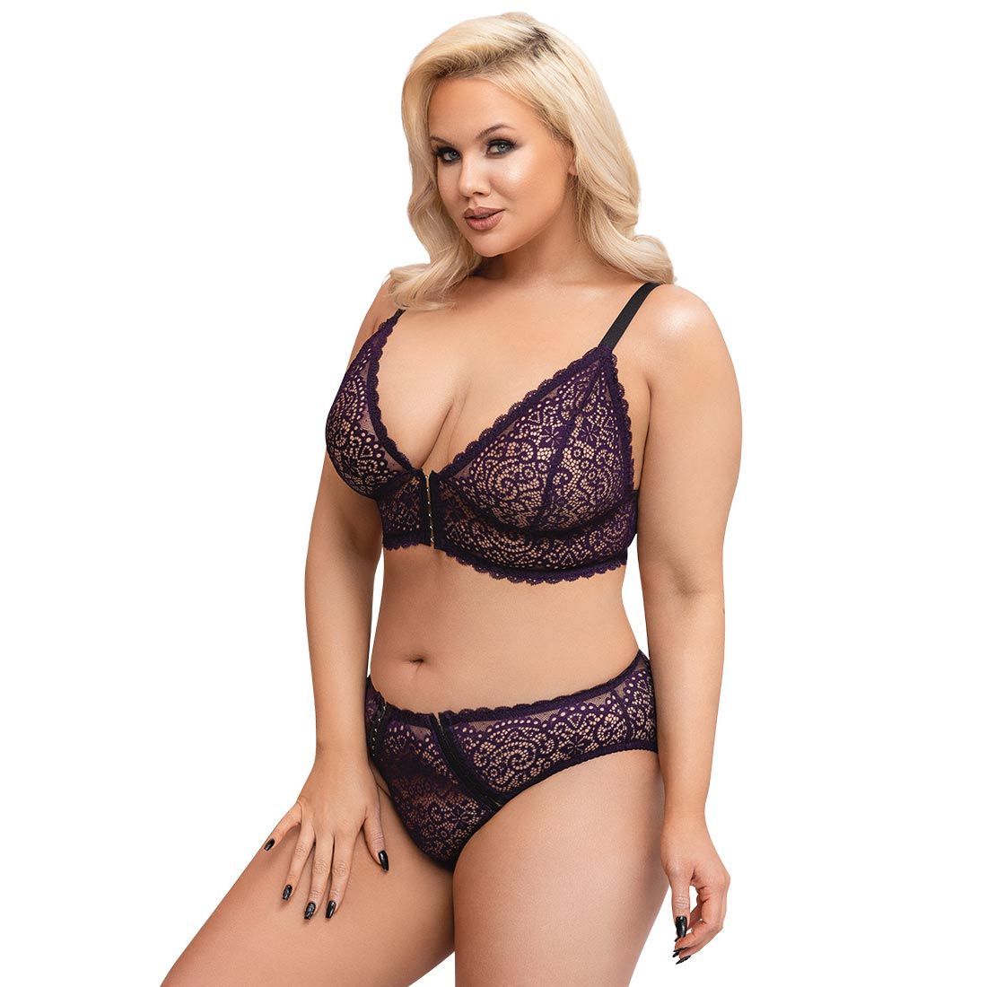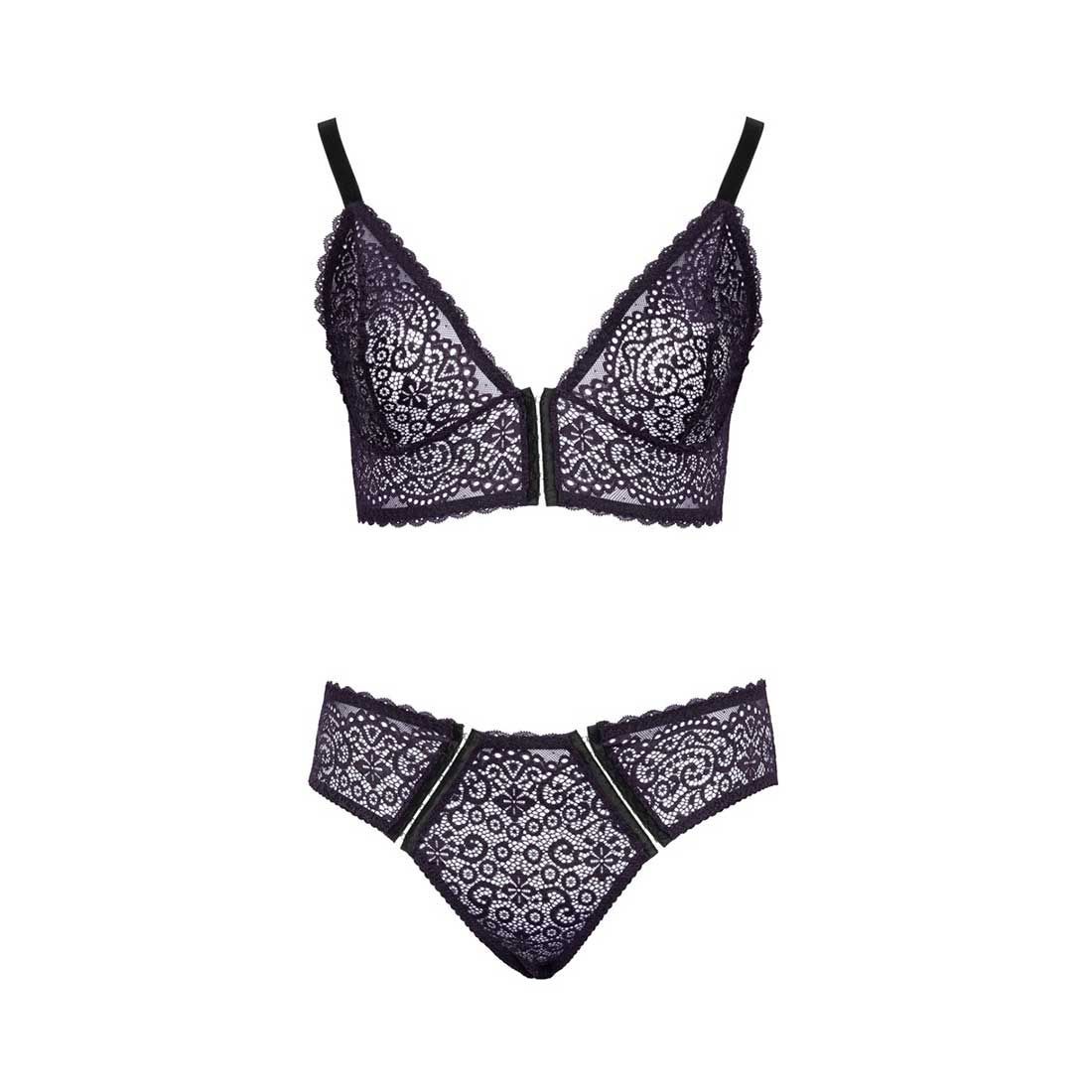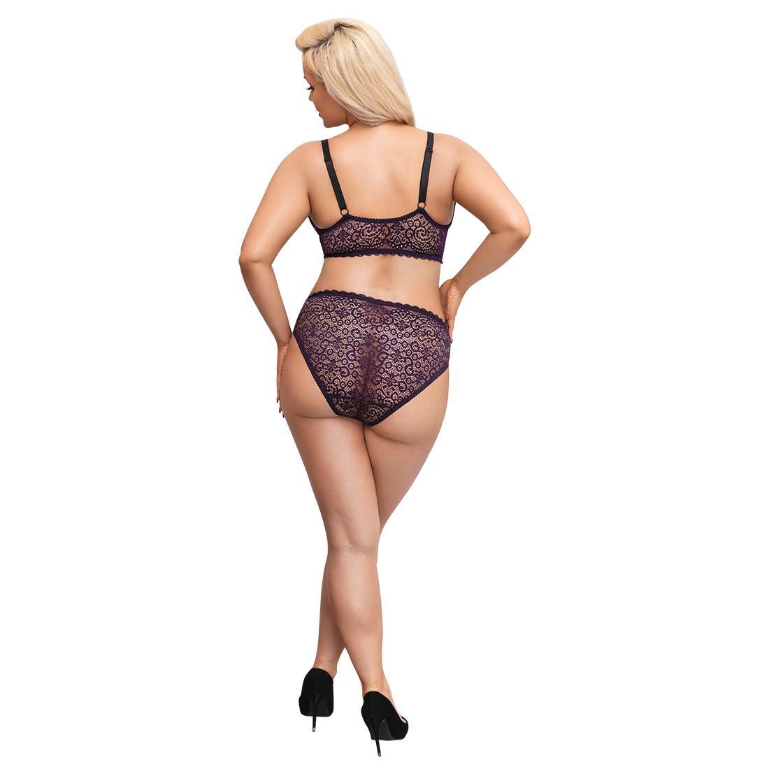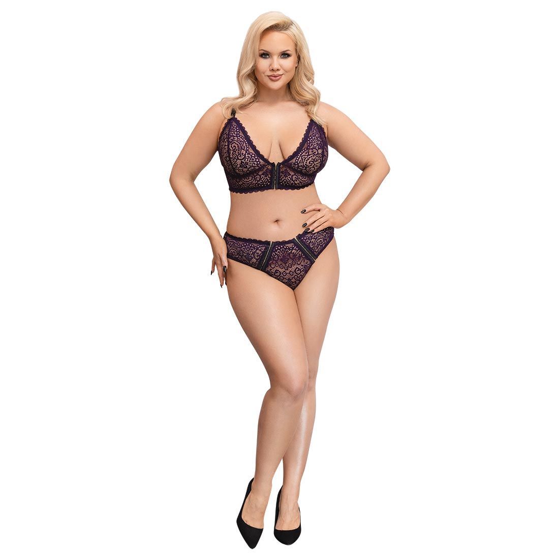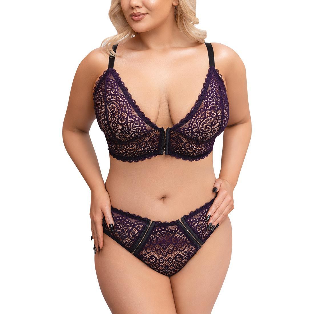 Sexy BH-Set XL-4XL weiche Spitze + Hakenverschluss vorne + Lila Dessous "Tina + "