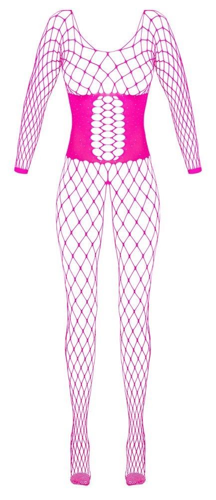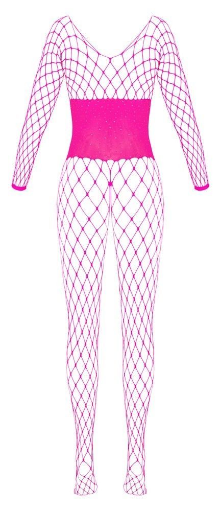 Sexy Catsuit Pink Mieder-Optik Bodystocking mit Strass Steinen Gr. One Size