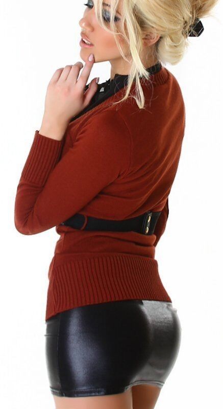 SEXY Damen Bluse Strick Pulli Lagen Pullover Gürtel S/ M 34/36 M/ L 36/38 Woodland