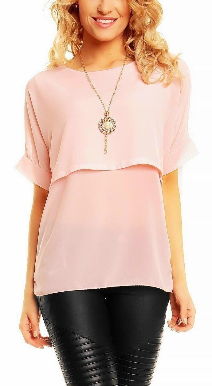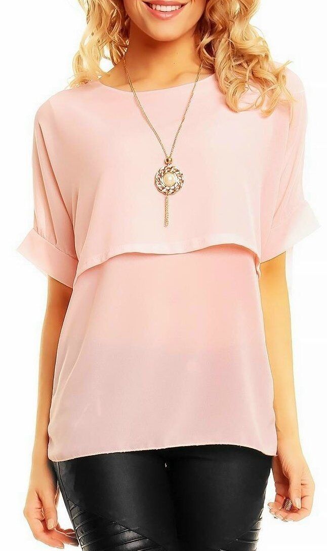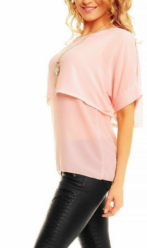 Sexy Damen Chiffon Bluse Shirt kurzer Volant Cape Arm Kette 34/36/38 TOP rosa