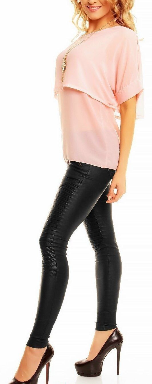 Long Shirt Chiffon Bluse+Kette sexy transparenter Style im Oberkörperbereich doppellagig Verarbeitet auf der unteren lage angenähnte Stofflage die wie ein Cape offen über die Arme hängt - offener Kurzarm figurbetonter Schnitt Eye Catcher Hot & Sexy In-Style Look _____________________________ Ein