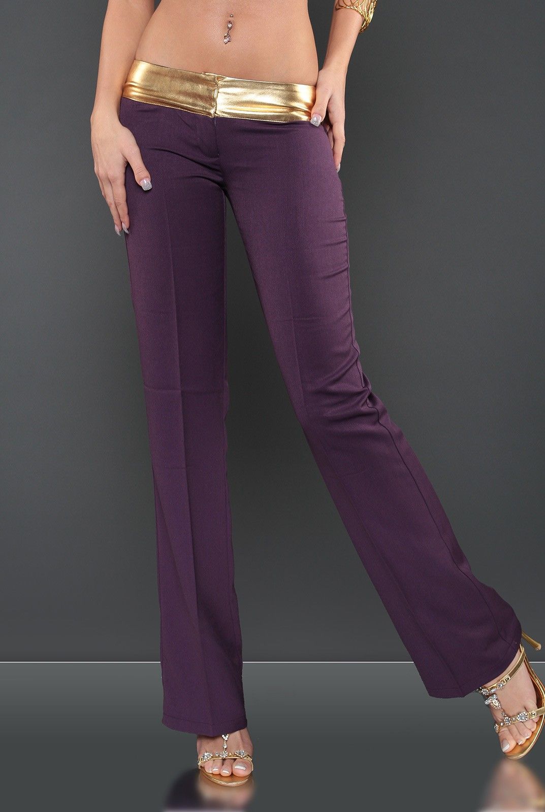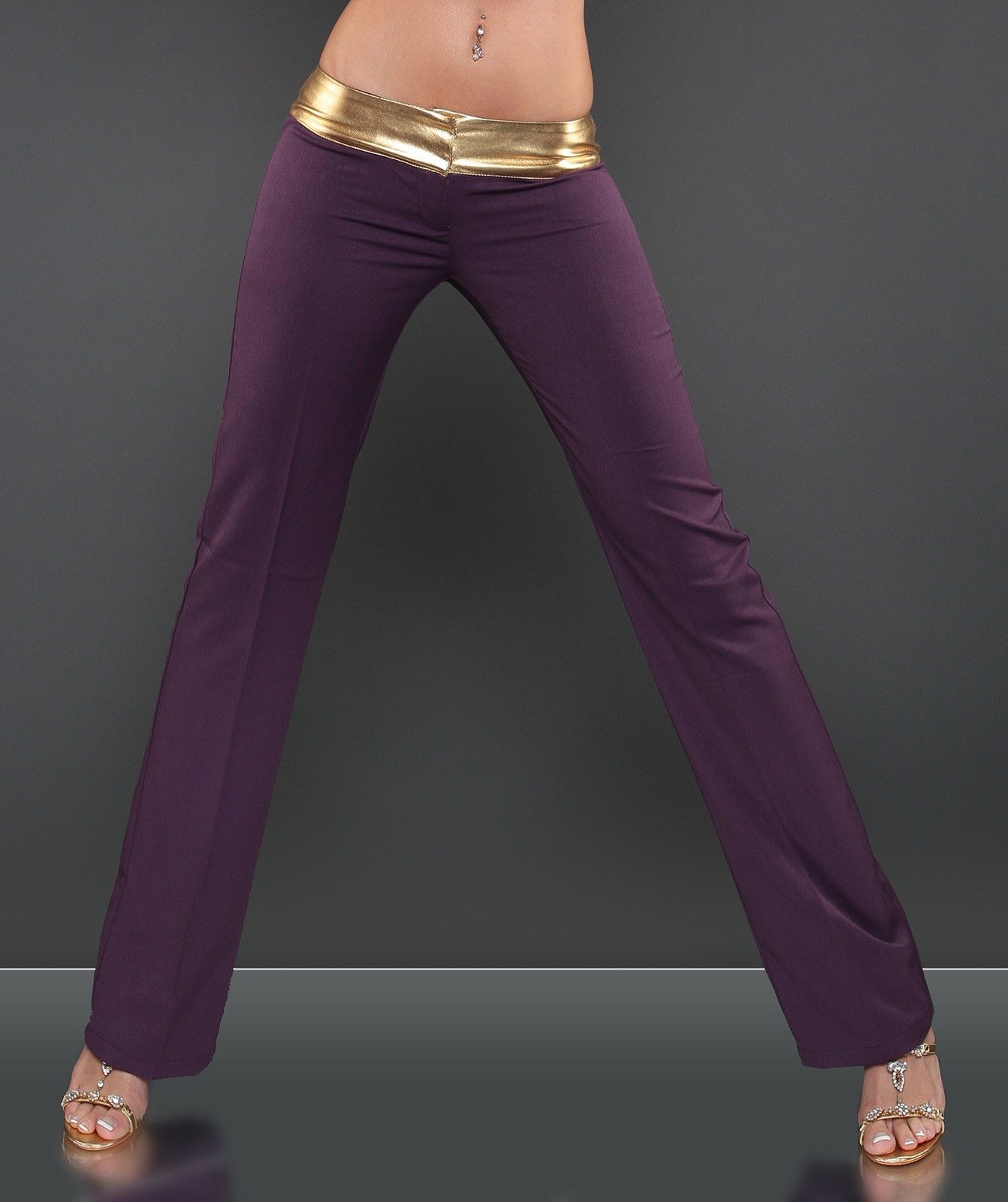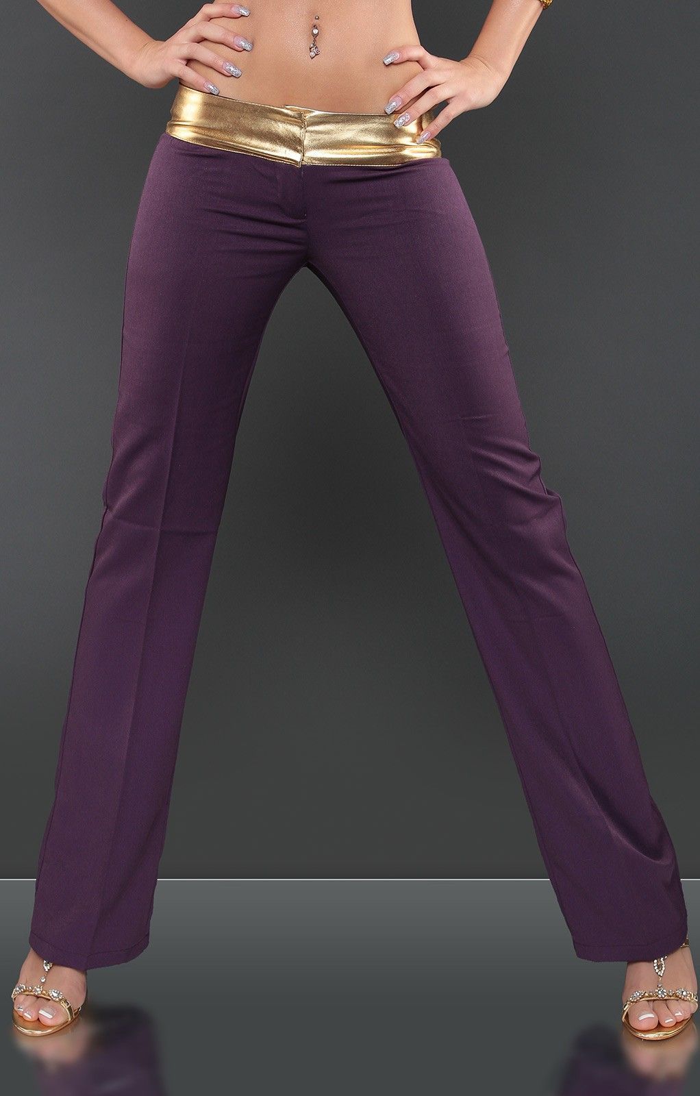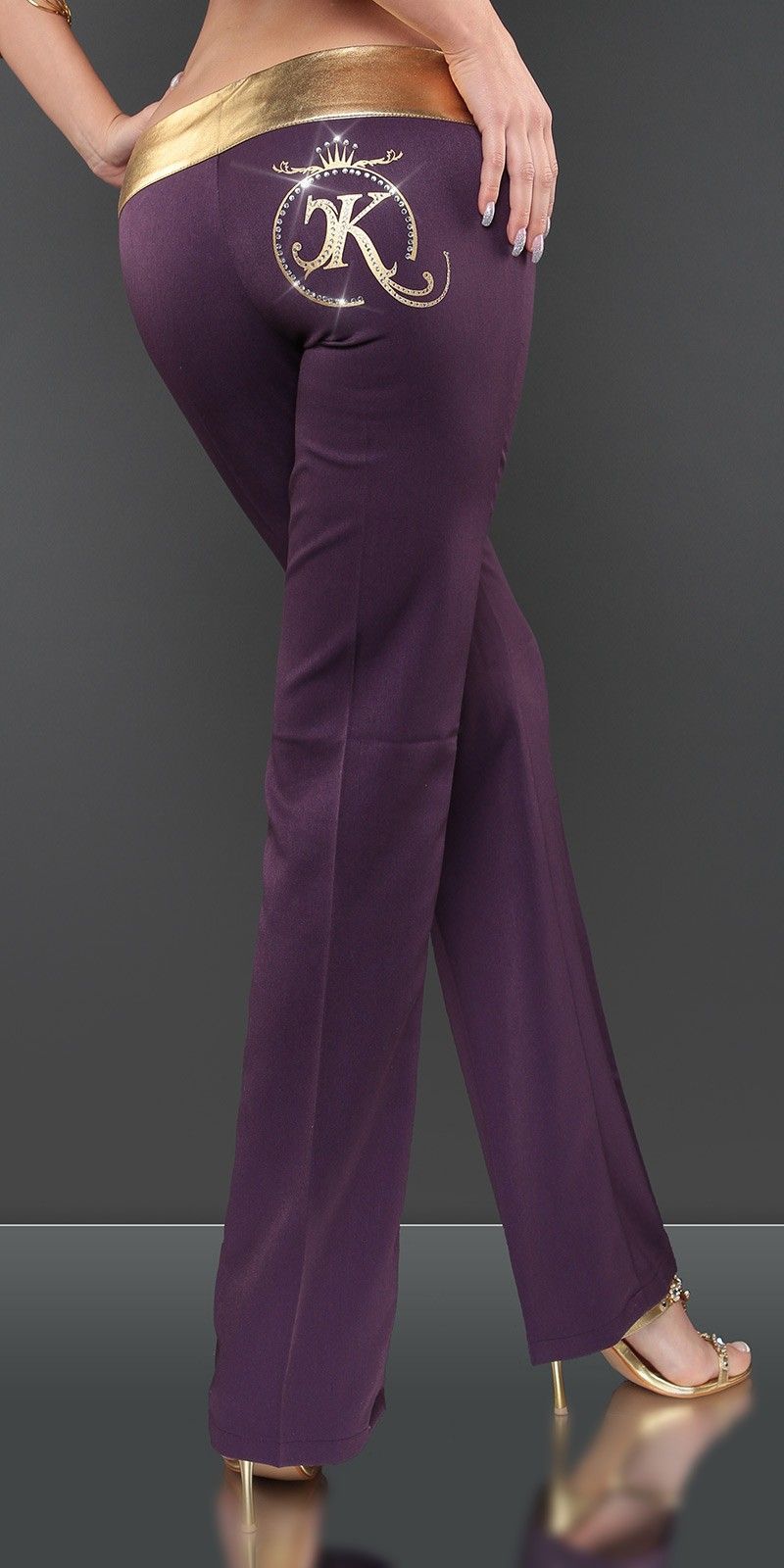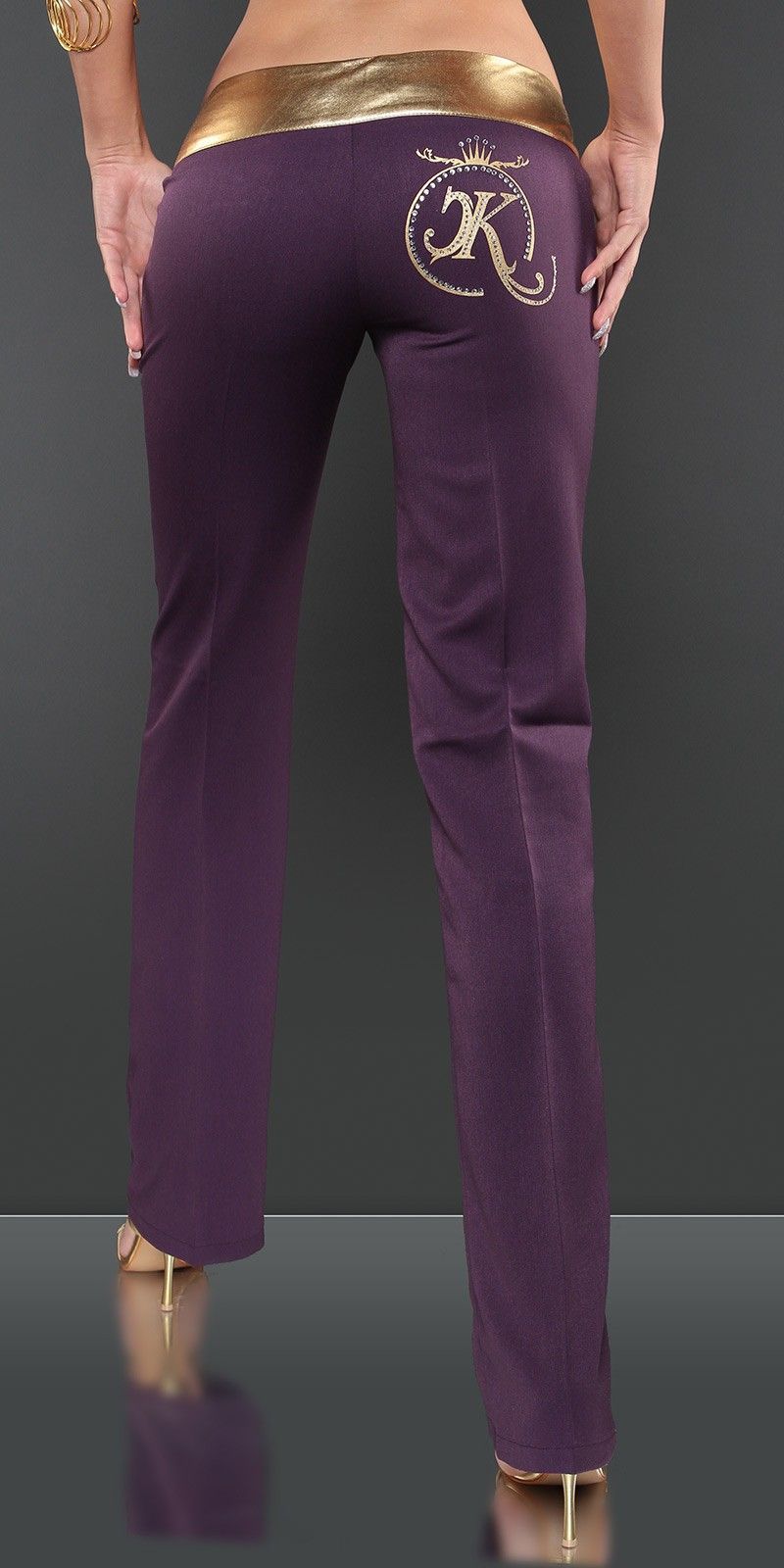 SeXy Damen Hüft Stoff Hose LoW CuT Glam Print Strass 34 36 38 40 lila gold