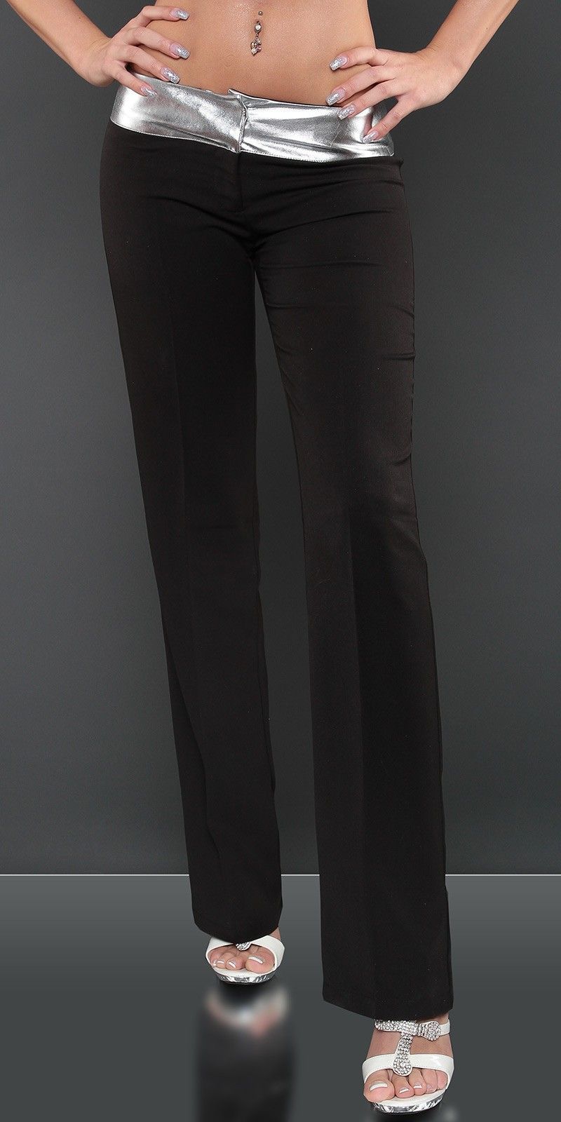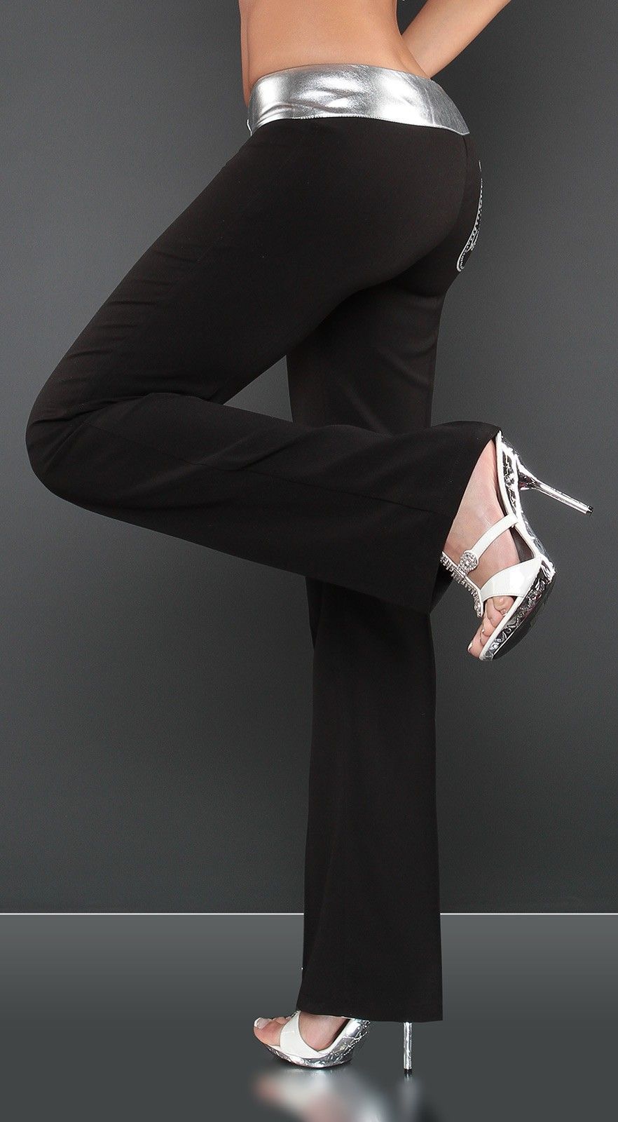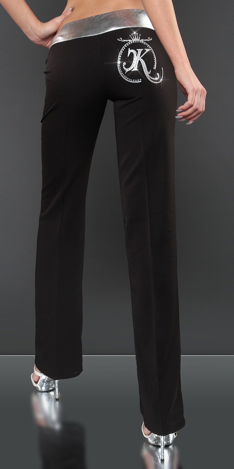 SeXy Damen Hüft Stoff Hose LoW CuT Glam Print Strass 34 36 38 40 schwarz silber