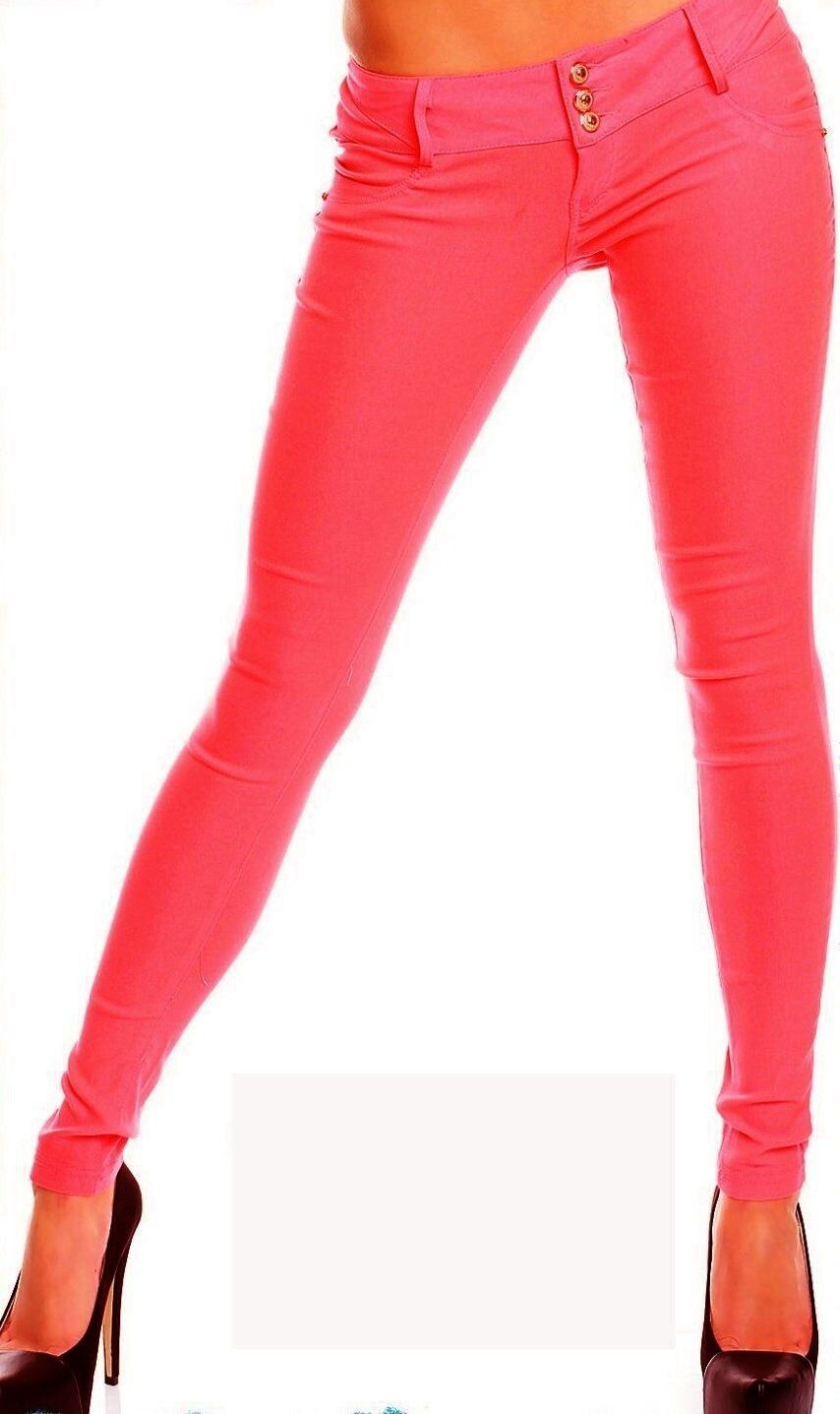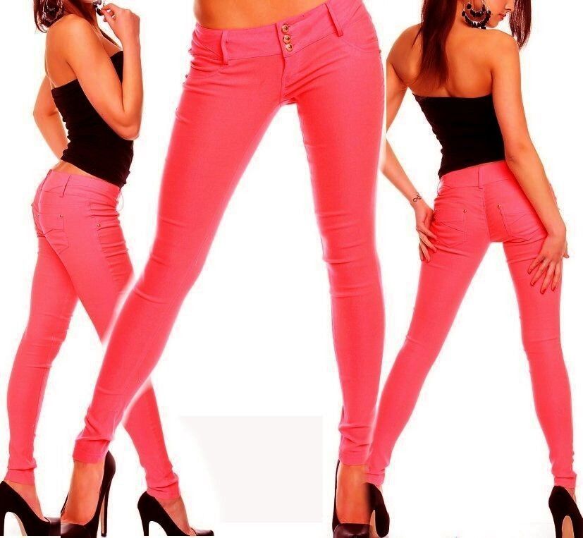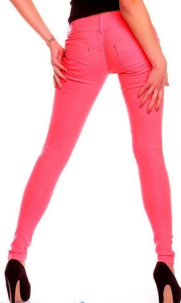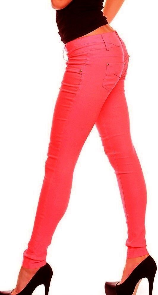 SeXy Damen Hüft Stretch Skinny Girly Hose XS 32 S 34 M 36 L 38 XL 40 grell lachs