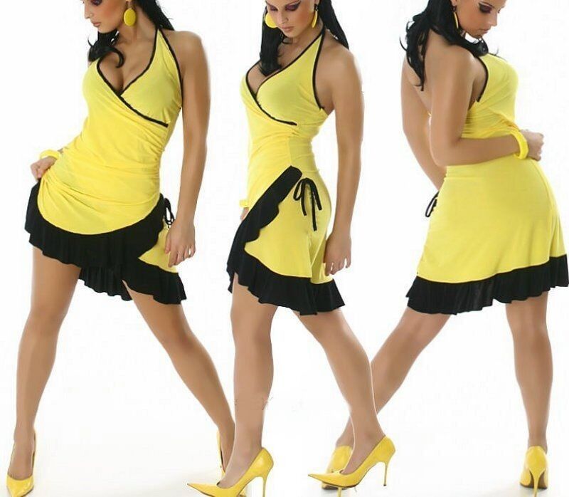 Salsa Look Mini Kleid figurbetonter Schnitt sexy tiefe V Dekolleté Neckholder Kleid im Wickel Look Design mit seitlicher Raffung Volant Abschluss Asymmetrisch geschnitten taillierter Schnitt elastisches Material Eye Catcher Hot & Sexy In-Style Look _____________________________ Einheitsgr