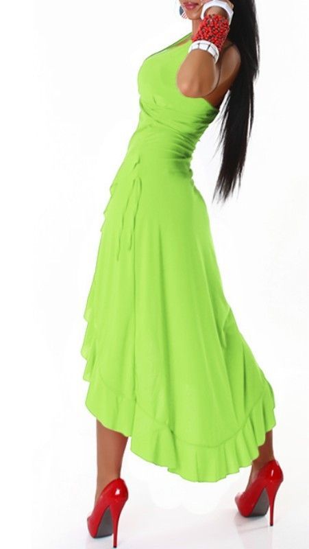 Sexy Damen Latina Salsa Volant V Tanz Kleid Vokuhila Dress 34/36/38 grün