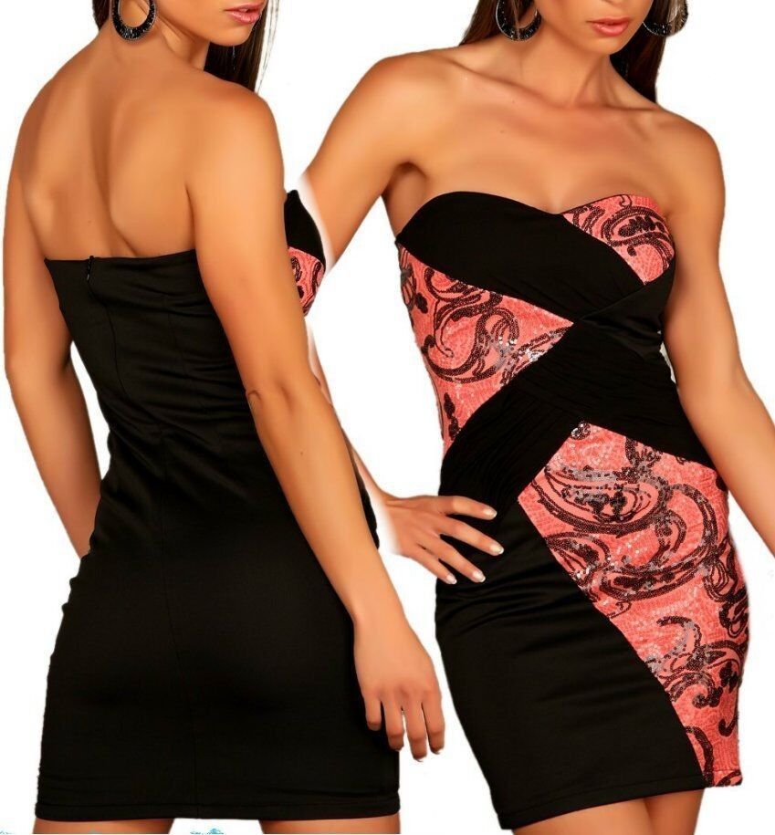 SeXy Damen Mini Kleid Glitzer Pailletten Bandeau Dress 34 36 38 40 schwarz lachs