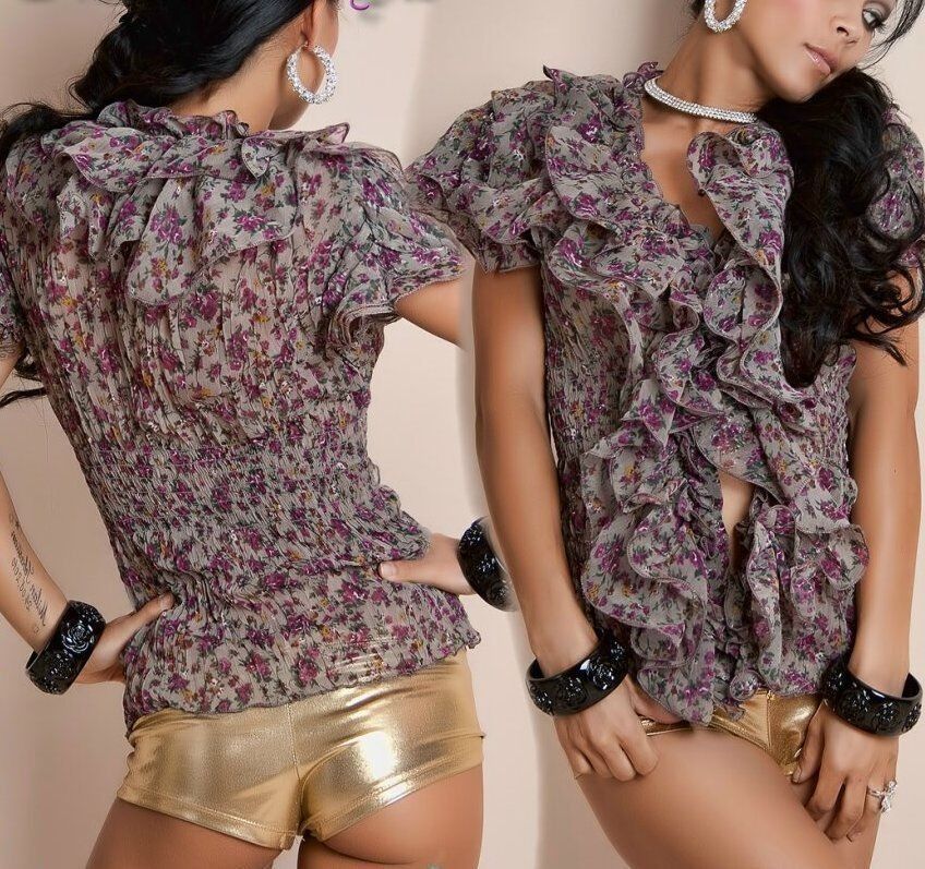 Sexy Damen Miss Bluse Romantic Flower Volant Chiffon Top S/ M 34/36 L/ XL 38/40