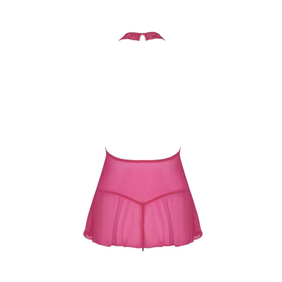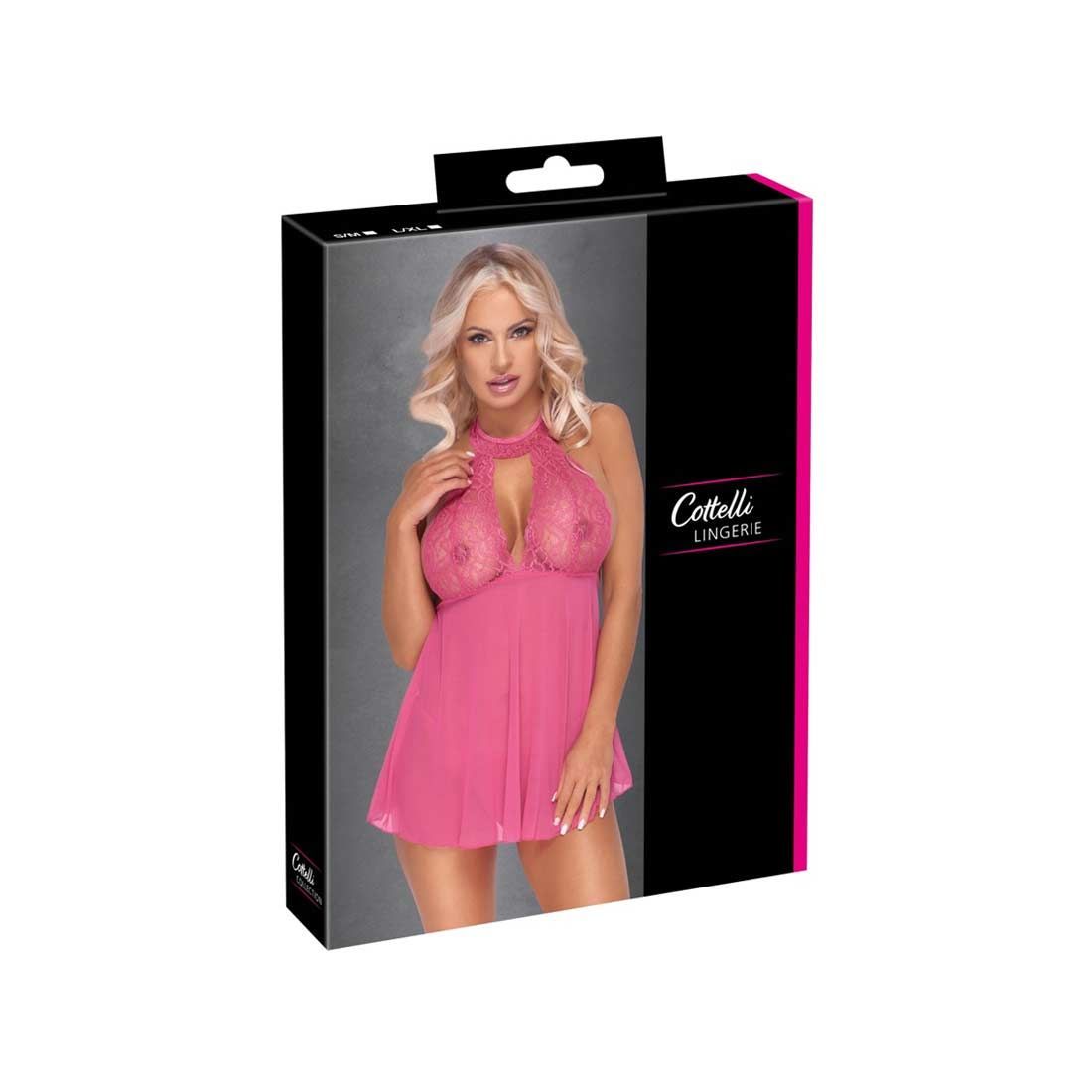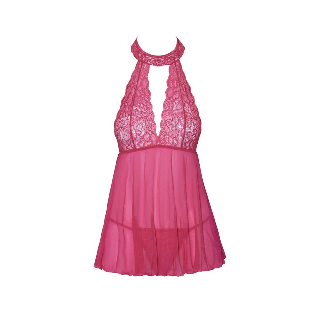 Sexy Damen Nachtkleid kurz Neckholder Nachtwäsche transparent Spitze Pink "Ellen