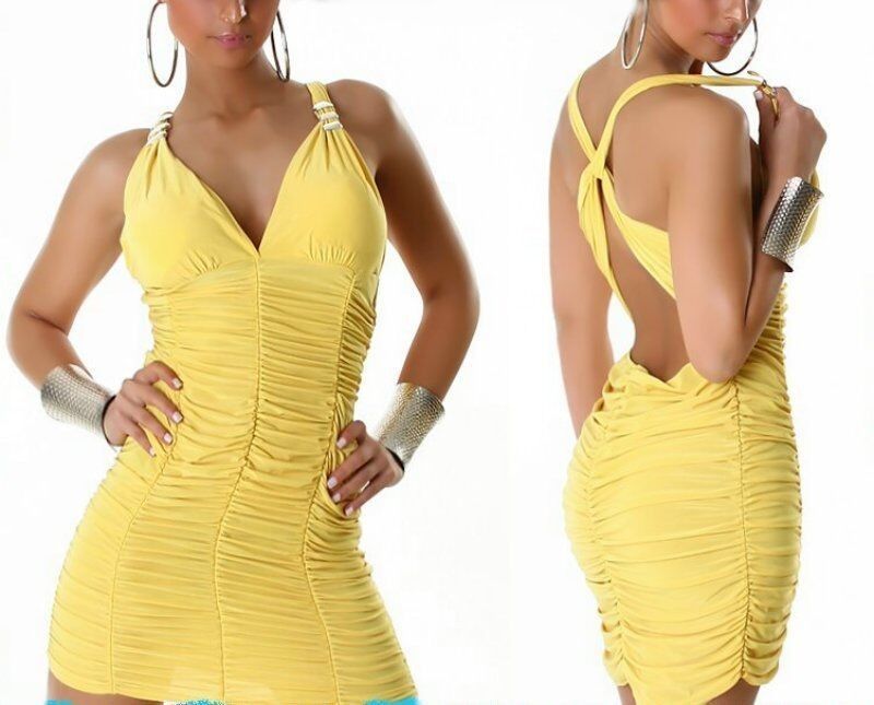 SeXy Damen Party Mini Kleid Raff Dress Glitzer Schnallen S/ M 34/36 NEU gelb
