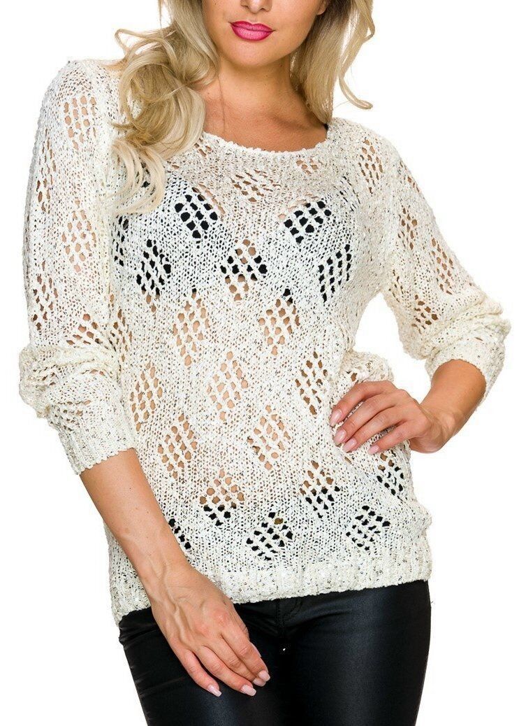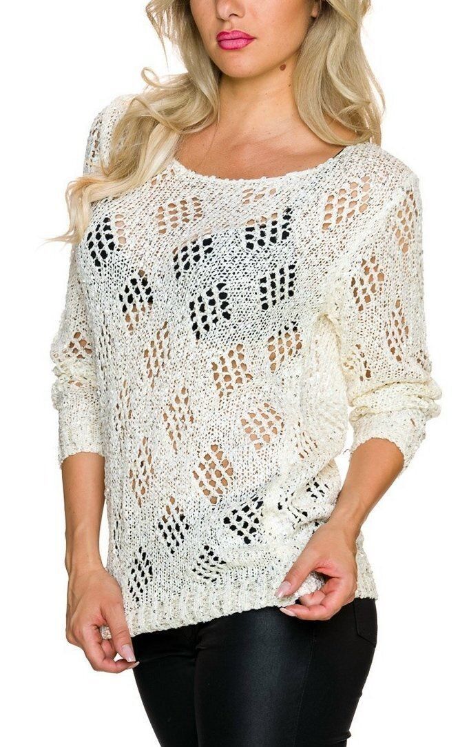 Edel Look Langarm Pullover Loch Strick Häkel Pulli sexy transparenter Style für näckische Einblicke Mit rundem Halsausschnitt glamourös mit Pailletten benäht elastisches Material lockerer bequemer Sitz Eye Catcher Hot & Sexy In-Style Look _____________________________ Einheitsgröße - Uni - Ohne