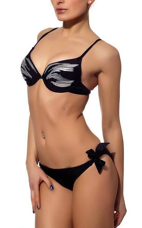 SeXy Damen Push up Glitzer Bikini Pailletten 34 36/38 38/40 schwarz silber NEU