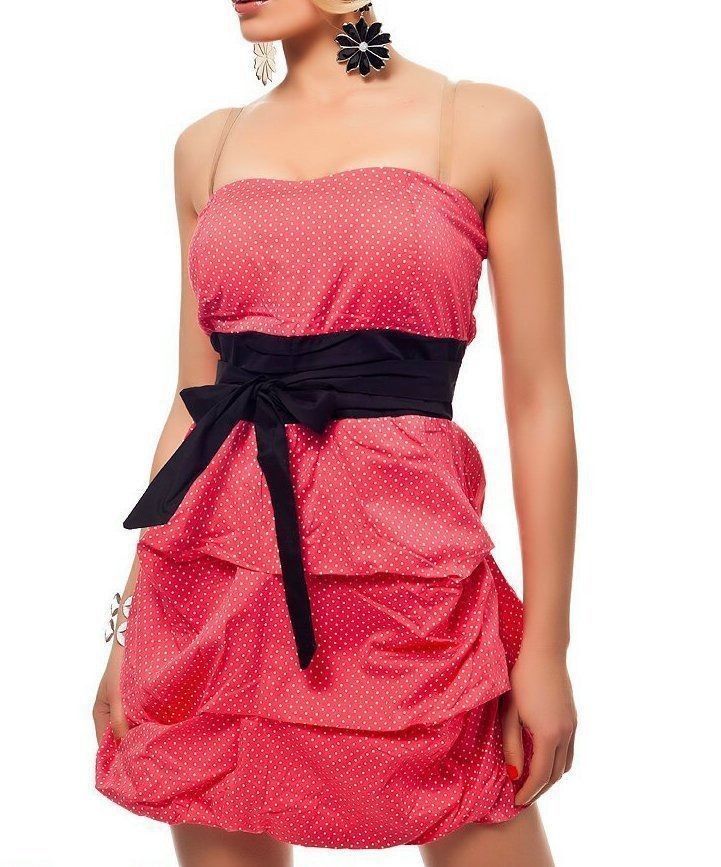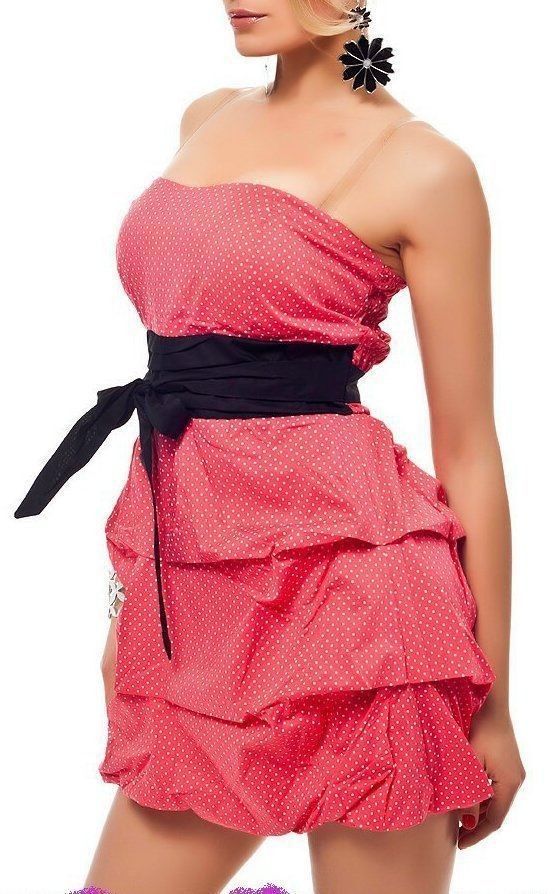 SeXy Damen Rockabilly Bandeau Mini Kleid Schleife Dots 34/36/38 Top Coral schwarz