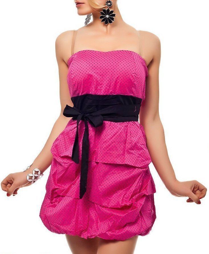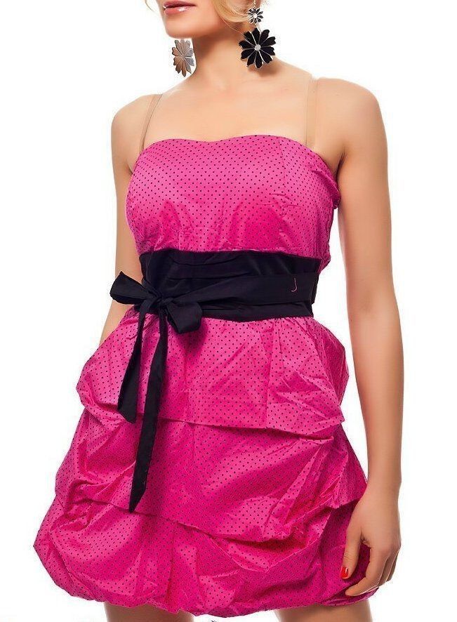 SeXy Damen Rockabilly Bandeau Mini Kleid Schleife Dots Smog 34/36/38 Top pink schwarz